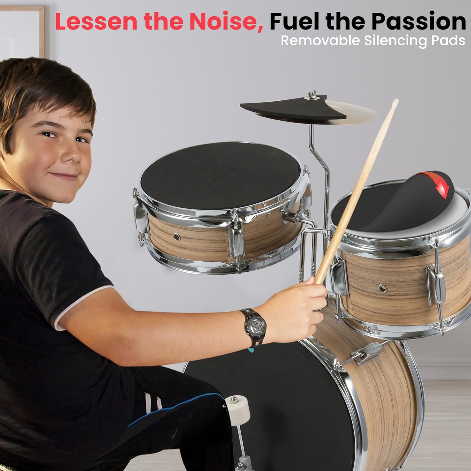 Contenu de la boîte : Paire de baguettes en bois Grosse caisse Pédale de grosse caisse Tom Caisse claire Cymbale avec support