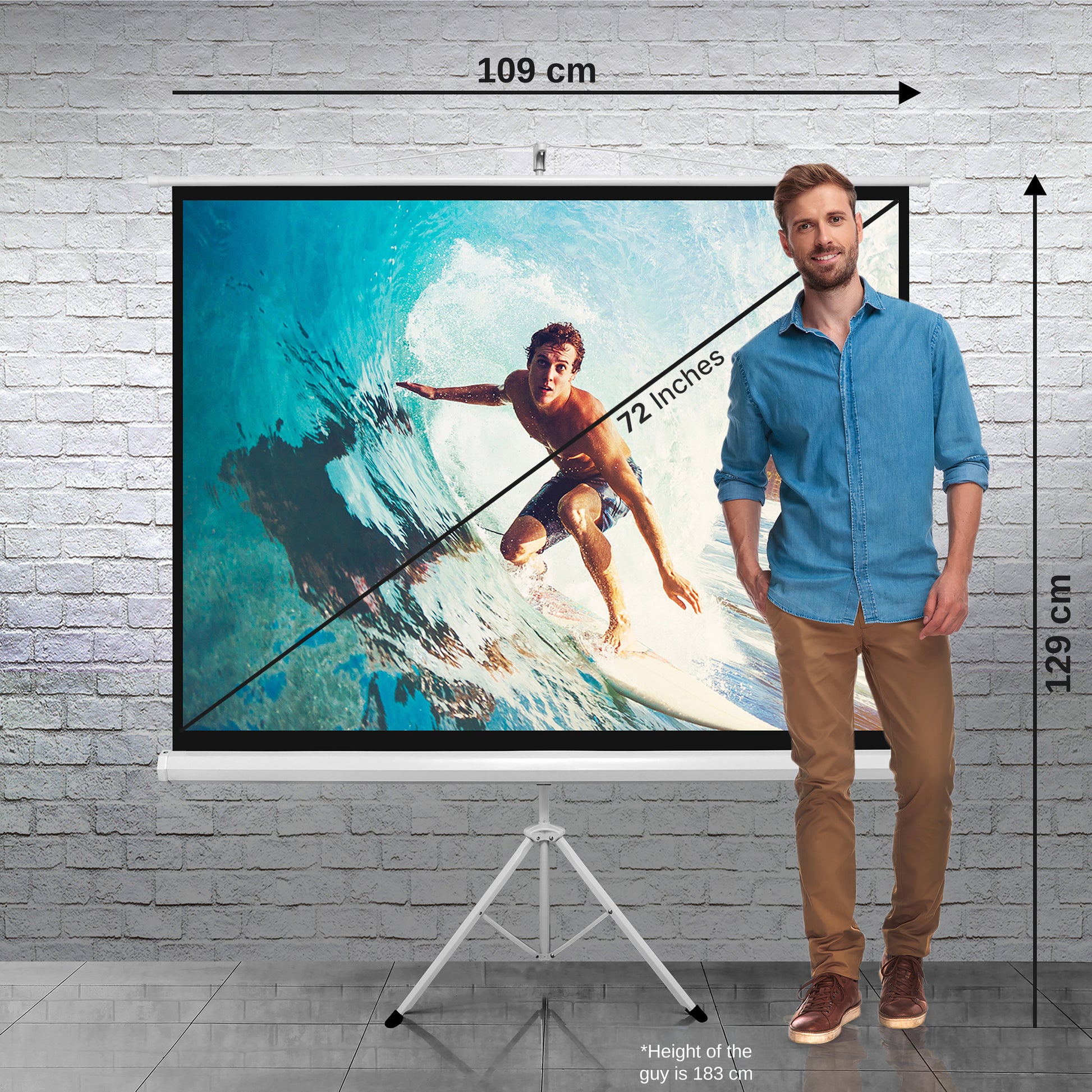 - Pieds de trépied en acier dépliables et écran enroulable