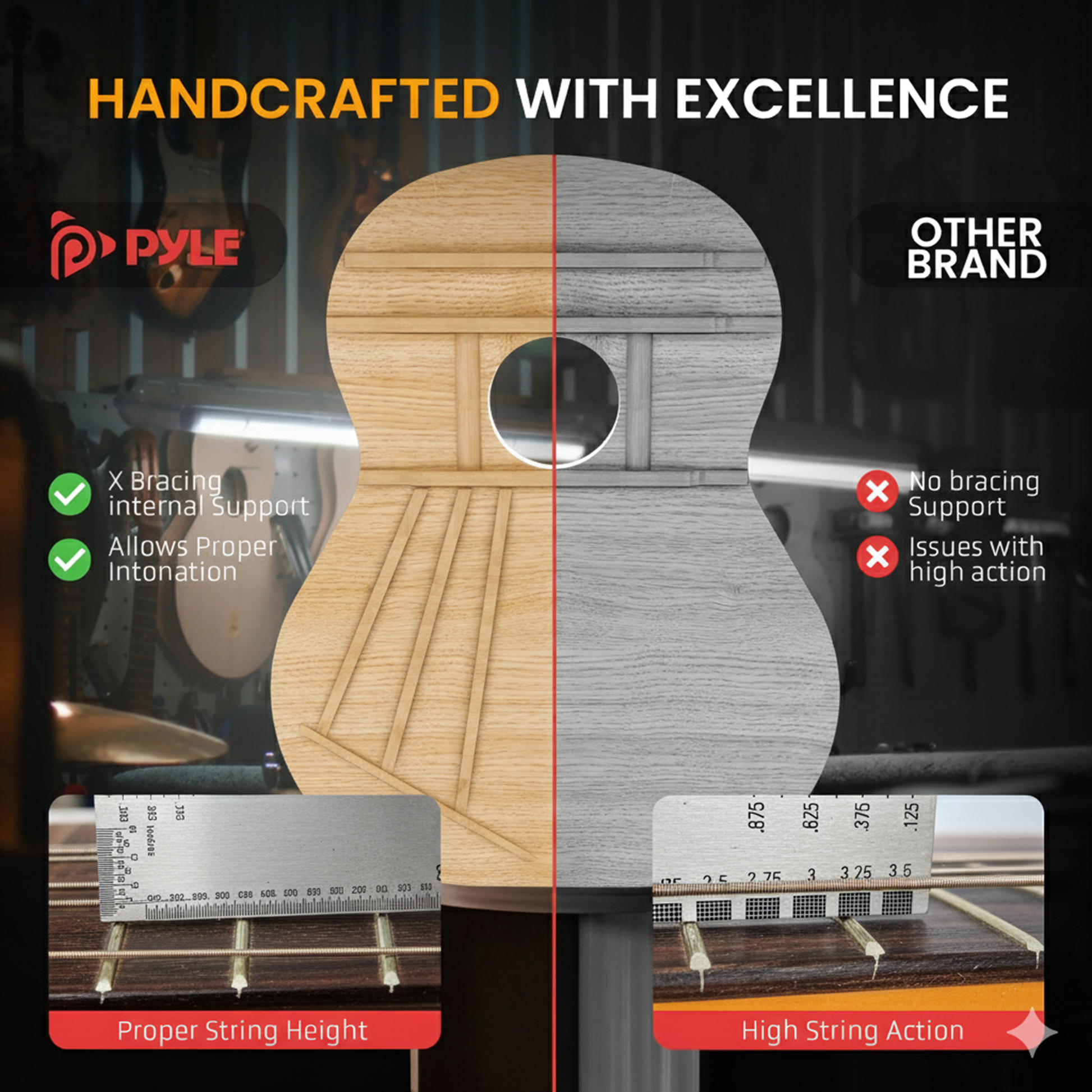 - Longueur totale de la guitare : 36 pouces