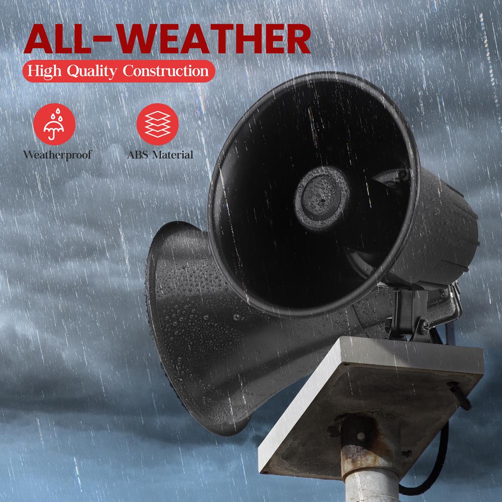Ce haut-parleur trompette mono toutes saisons de Pyle est ce qu'il vous faut lorsque vous avez besoin de faire un impact sonore important ! Le pavillon ABS de 5 pouces délivre jusqu'à 25 watts en puissance de crête et peut reproduire votre voix ou votre musique jusqu'à 112 dB. Il est équipé d'un support réglable pivotant à 180 degrés pour une maniabilité facile. Comprend un câble pré-câblé de 10 pieds avec connecteur mono 3,5 mm.
