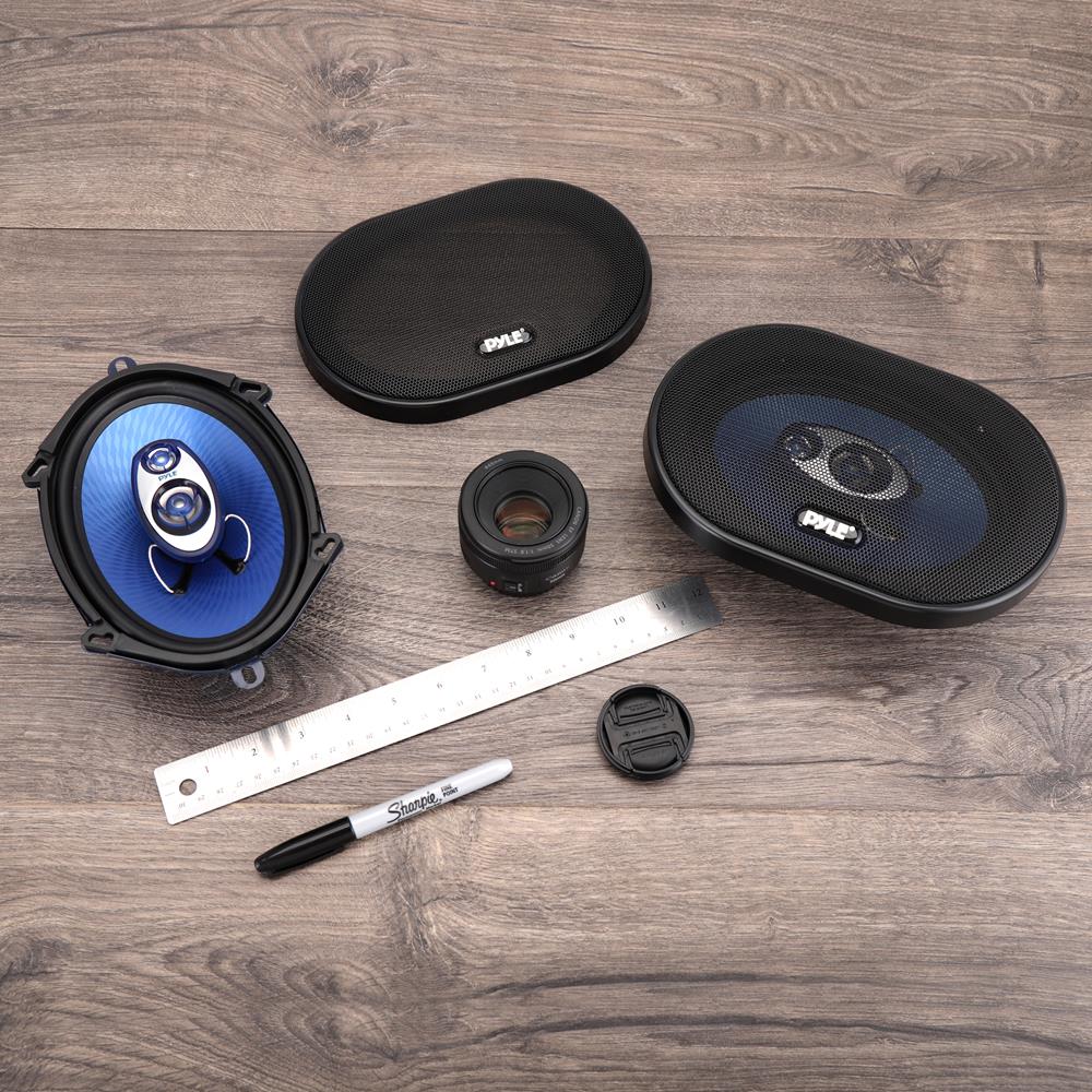 Les enceintes de la série Blue Label de Pyle ne se contentent pas de bien sonner - elles sont aussi superbes. Admirez les courbes azurées de la série Blue Label de Pyle et vous serez conquis. Elles constituent d’excellents remplacements pour les haut-parleurs d’origine de votre véhicule – vous remarquerez la différence immédiatement. Ce pack comprend un ensemble : un haut-parleur 5 x 7 pouces et un 6 x 8 pouces, tous deux à trois voies de 300 watts – couvrant les hautes, moyennes et basses fréquences pour un son plus riche. Le pourtour en caoutchouc butyle non fatiguant maintient vos haut-parleurs en sécurité tout en prolongeant la durée de vie du produit. Une bobine acoustique ASV haute température de 1" offre un son riche, assurant une faible distorsion et une scène sonore ouverte. Le cône bleu en poly-injection est esthétique et permet à votre musique de résonner avec toute sa puissance. La structure magnétique de 20 oz, le dôme médium en film de néodyme de 1" et le tweeter piézo de 3/4" alimentent ces haut-parleurs et permettent une réponse en fréquence de 80 Hz à 20 kHz. Grilles, câbles et accessoires de montage inclus. Faites confiance à Pyle pour un son de qualité à un prix compétitif.