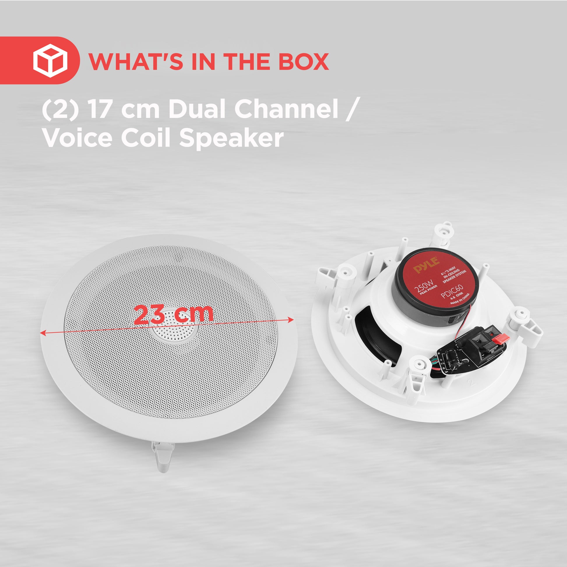 Le système d’enceintes Pyle PDIC offre un son stéréo dans n’importe quelle pièce de votre maison ou bureau sans encombrer l’espace au sol. Cette paire d’enceintes de 6,5 pouces peut être utilisée en installation murale ou au plafond, car elles s’encastrent pour un rendu épuré. Parfaites pour des installations personnalisées, les enceintes de la série PDIC sont dotées de tweeters à dôme en titane, d’une capacité de puissance impressionnante, de bobines mobiles haute température et d’un rendement élevé – tout cela pour produire un son plus riche et plus complet. Les bornes de connexion pratiques permettent un branchement rapide et sans effort des câbles d’enceintes. Le système inclut un gabarit de découpe pour une installation facile. Profitez d’une performance sonore étendue et ajoutez de l’audio dans n’importe quelle pièce avec les systèmes d’enceintes PDIC. Vendues par paire.