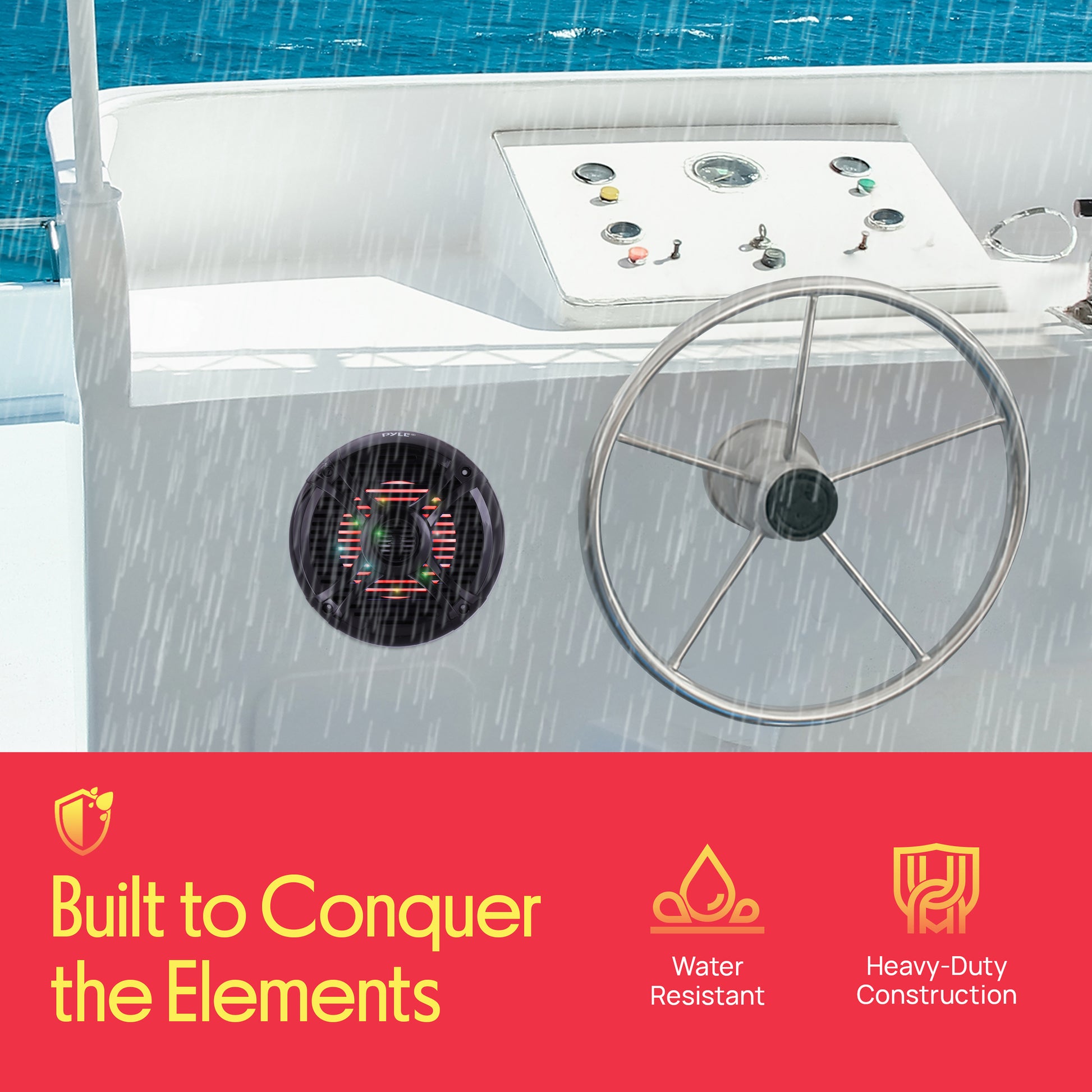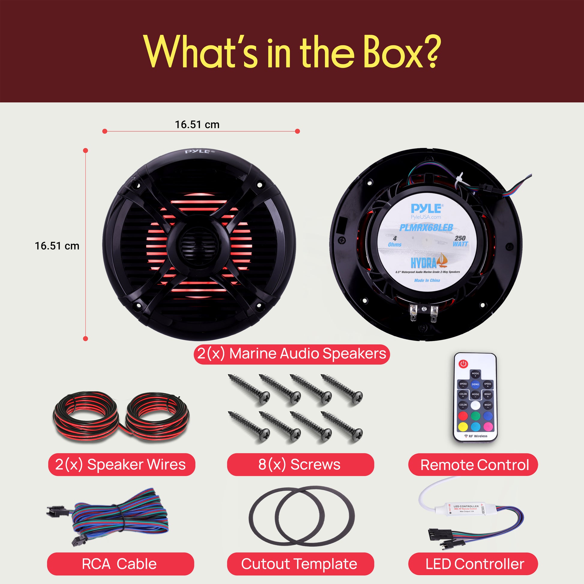 Les enceintes étanches Pyle Hydra 6,5 pouces sont équipées de lumières LED multicolores intégrées. Améliorez votre expérience audio en ajoutant un spectacle visuel captivant pour vos yeux ainsi qu’un son stéréo net pour vos oreilles. Le système comprend une télécommande qui vous permet de programmer vos lumières — pour ajuster la luminosité des couleurs, la vitesse et les modes de clignotement dynamique. Les enceintes Hydra servent de remplacement OEM standard pour un échange rapide et leur construction marine étanche les rend parfaites pour tous vos besoins sur véhicule marin ou automobile. Parmi les autres caractéristiques, on retrouve une reproduction sonore stéréo à 2 voies, une puissance de sortie de 250 watts, des cônes robustes en polypropylène et des paniers moulés en ABS résistants aux intempéries. Ajoutez un son éclatant et des couleurs dynamiques à votre système audio avec les enceintes étanches Pyle Hydra. (Disponibles en noir et blanc Modèles : PLMRX68LEB PMRX68LEW).