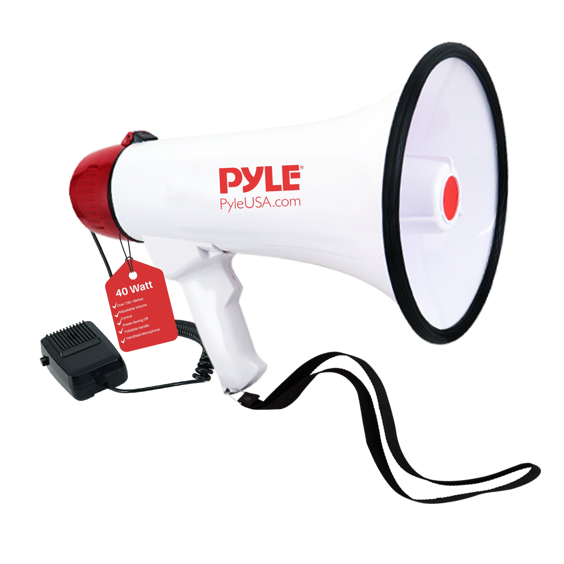 Le haut-parleur mégaphone Pyle PMP40 offre une capacité de projection audio portable et puissante ! À chaque itération de ses mégaphones phares, Pyle a amélioré l’autonomie de la batterie, la puissance sonore et la fonctionnalité ergonomique. Contrôlez les foules à des distances allant jusqu’à plus de 1000 pieds. Les fonctionnalités supplémentaires du système incluent un mode alarme sirène activé par bouton, un contrôle du volume réglable, le tout dans un design fonctionnant sur piles (nécessite 6 piles de type ‘D’, non incluses). Profitez d’un contrôle portable et puissant de haut-parleur PA avec le mégaphone Pyle.