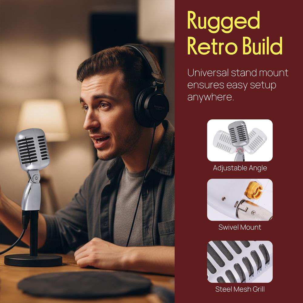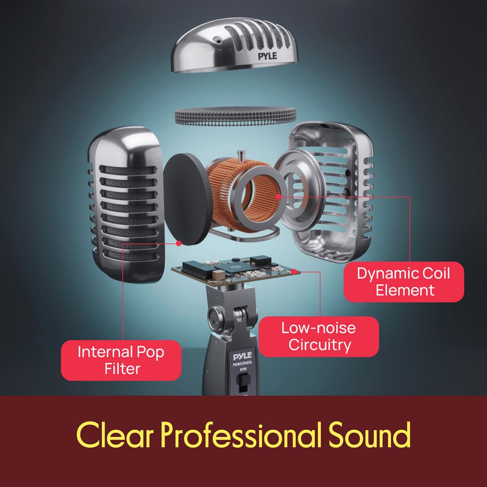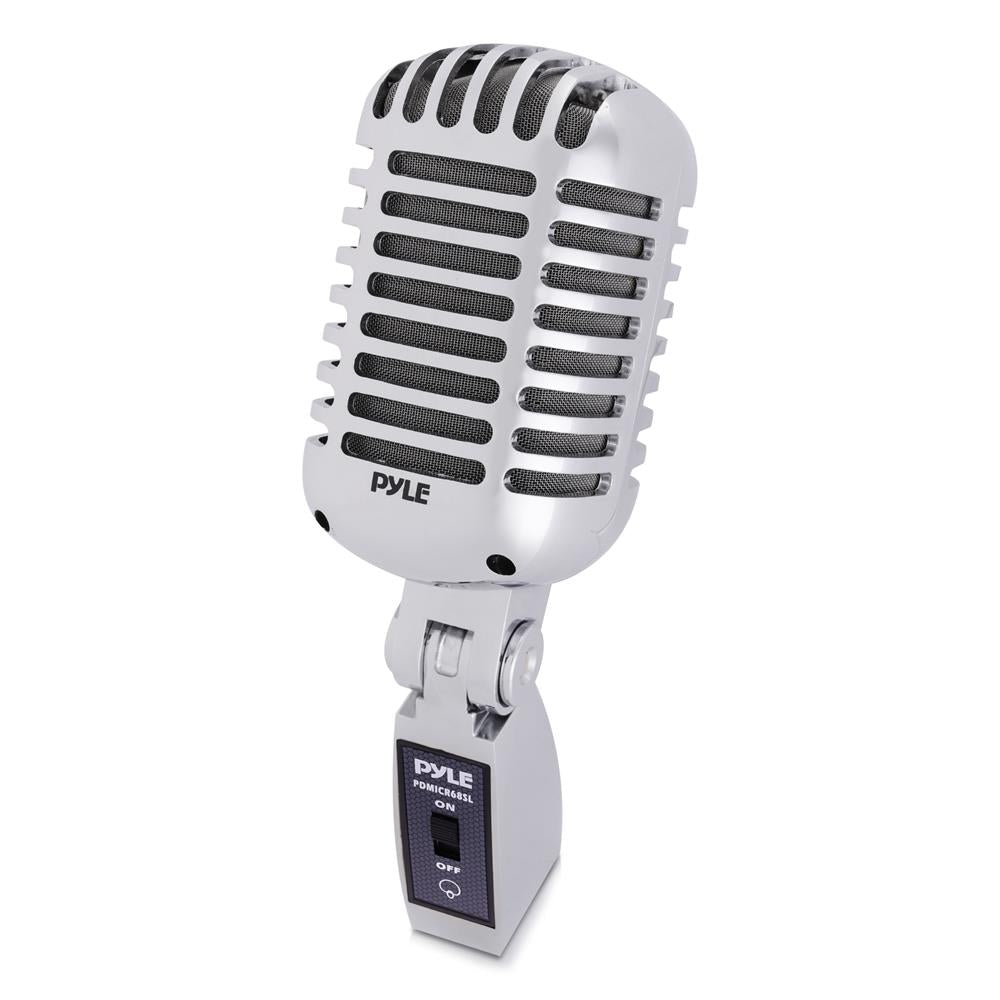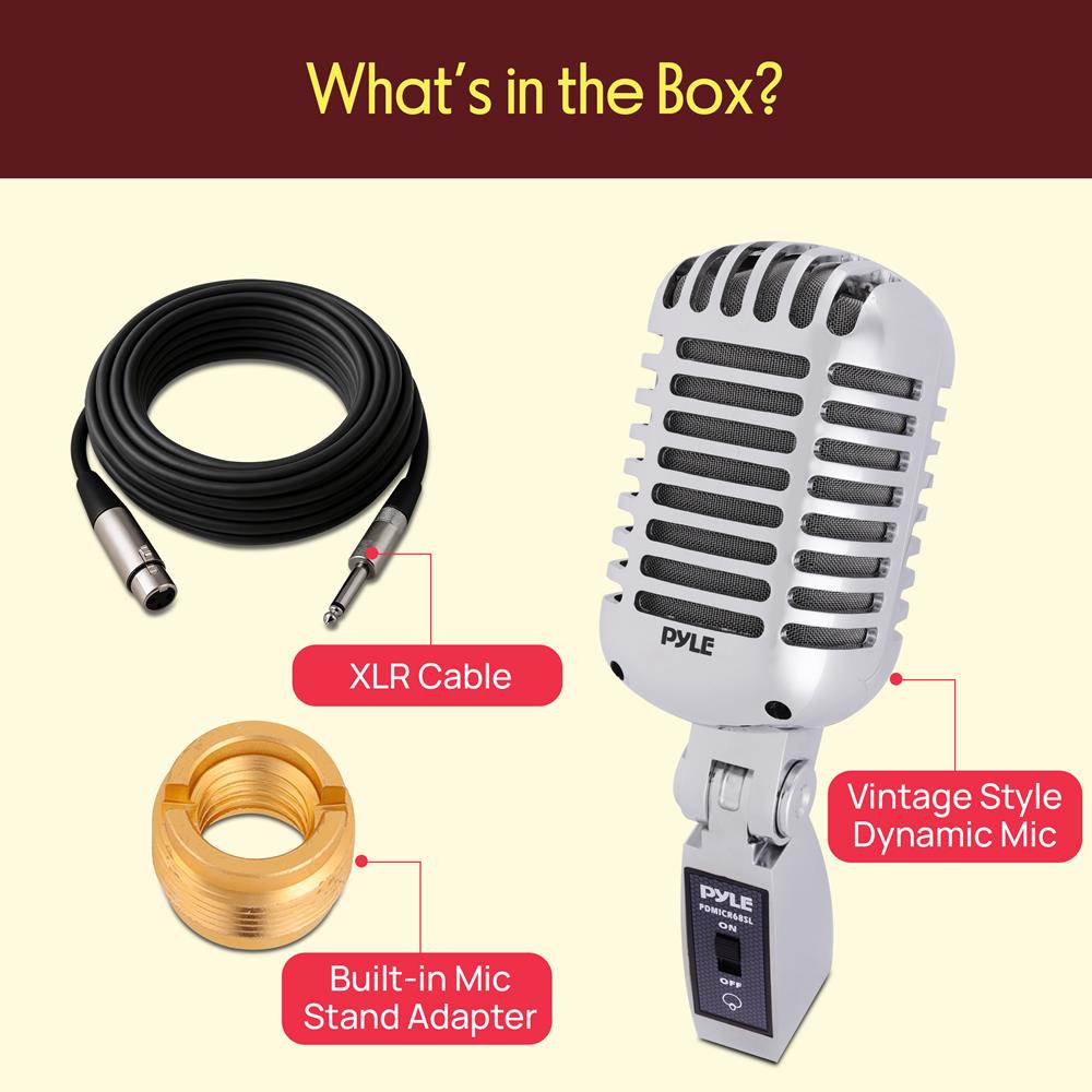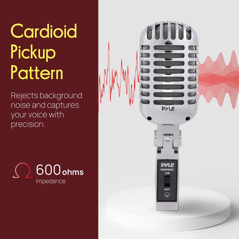 Obtenez une performance sonore de qualité et du style avec les microphones rétro classiques de Pyle. Les micros dynamiques de la série vintage PDMICR68 vous offriront cette touche old-school associée à la toute dernière technologie de reproduction audio. Au-delà de leur design emblématique, éprouvé sur scène et en studio, ces micros classiques disposent d’éléments dynamiques à bobine mobile, de supports pivotants auto-tendants réglables, de directivités cardioïdes, de taux de réponse en fréquence impressionnants et bien plus encore — pour créer un look et une sensation générale fantastiques. Les microphones rétro et classiques de la série Pyle PDMICR68 sont sûrs de vous apporter le son et le style que vous recherchez.