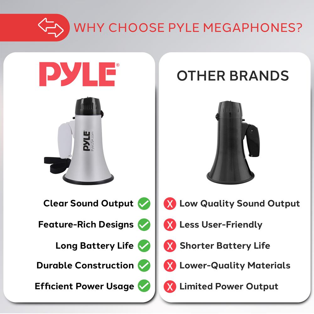 - Taille du mégaphone (diamètre x longueur) : 5,40 x 8,60 pouces