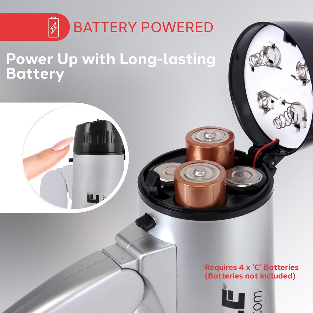 - Fonctionne sur piles : nécessite (4) piles « C » non incluses
