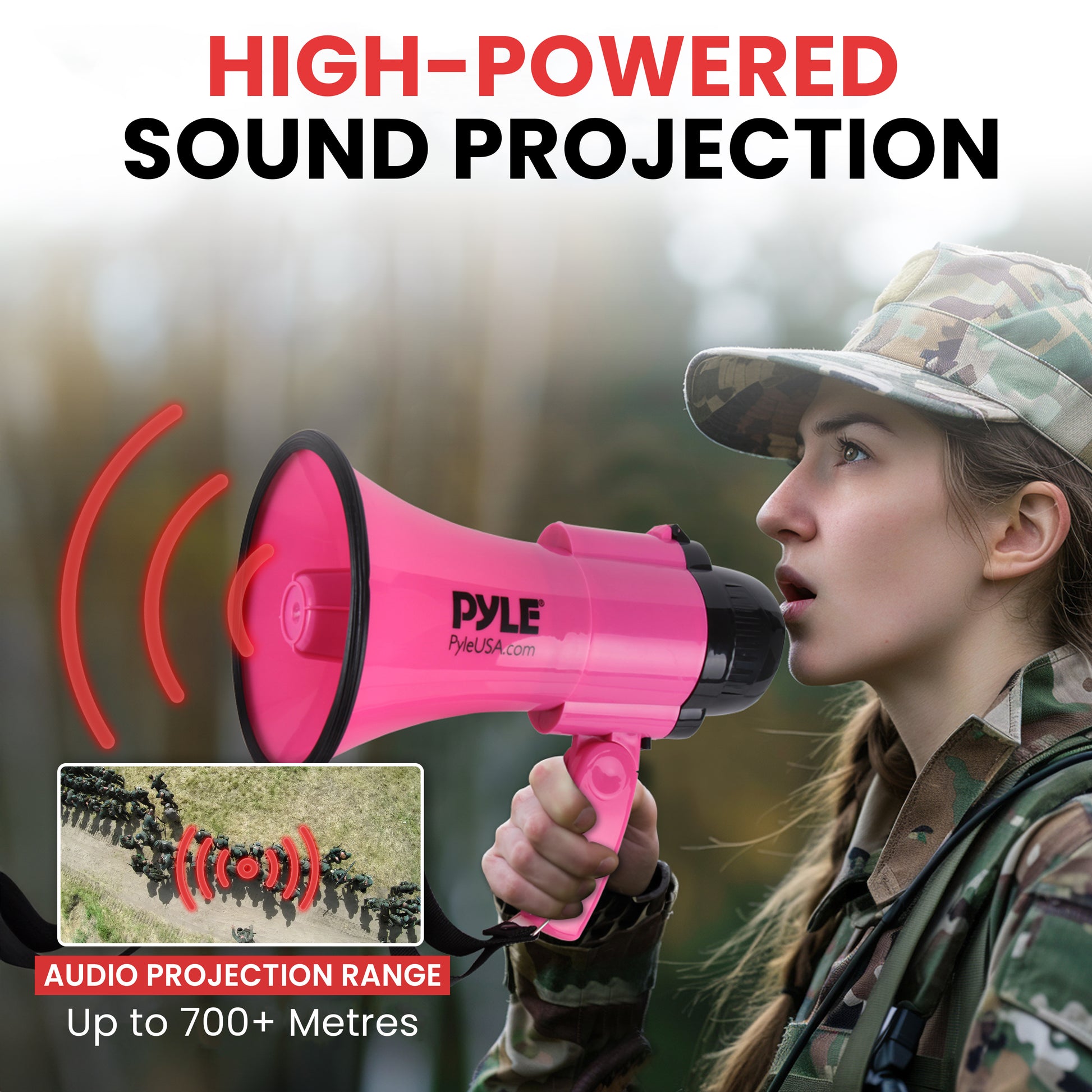 - Portée de projection audio : jusqu'à 800+ yards