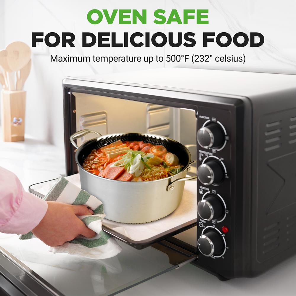 - Convient à toutes les plaques de cuisson, compatible lave-vaisselle, compatible four (jusqu'à 500°F)
