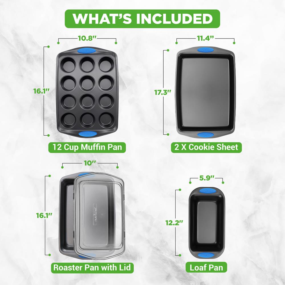 - Ensemble de moules à pâtisserie en acier au carbone flexible et antiadhésif avec poignées en silicone bleu