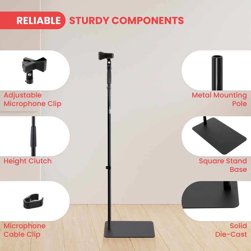Contenu de la boîte : Pied de micro à base carrée Clip pour microphone Clip pour câble Adaptateur à vis 5/8"