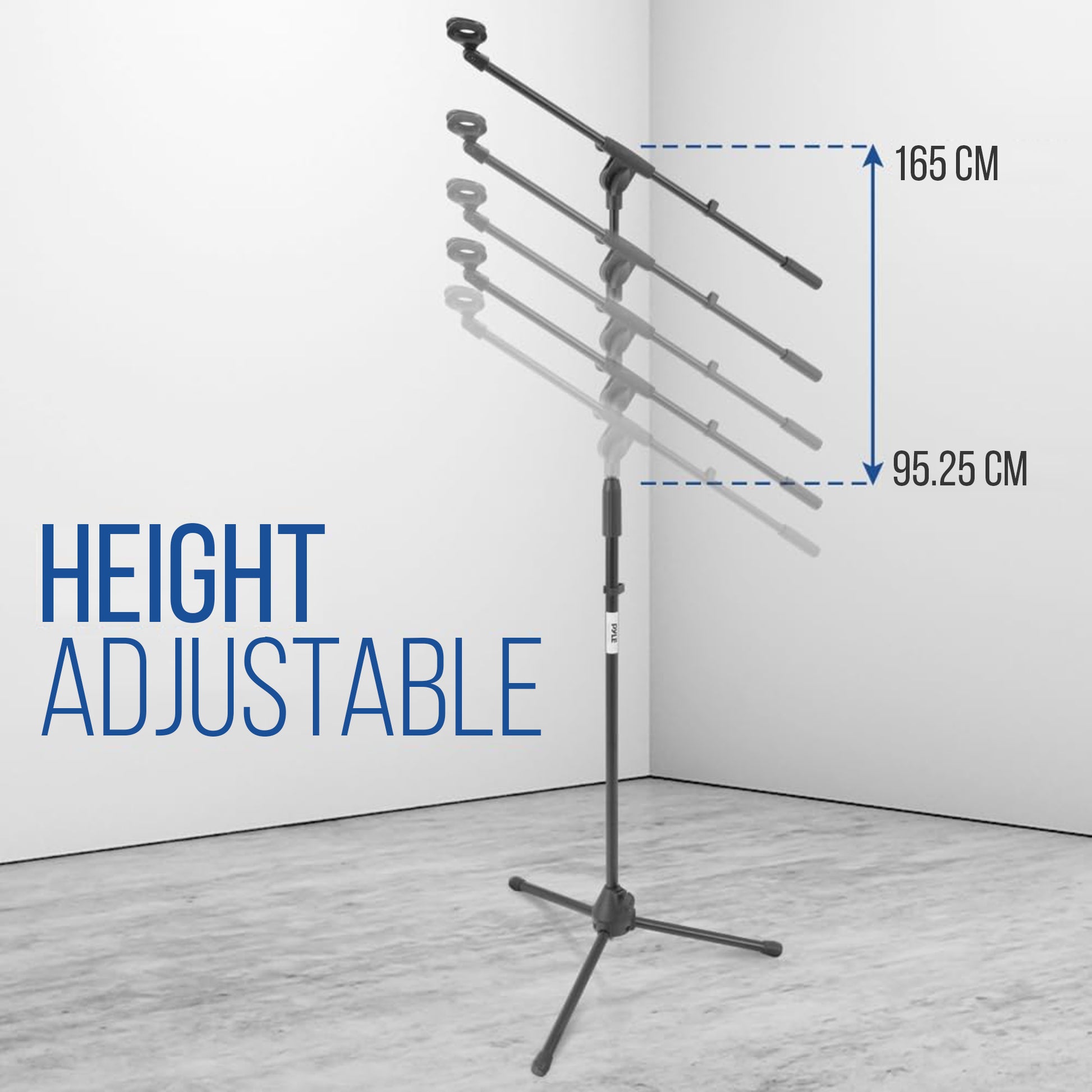 Le support de microphone sur trépied Pyle à hauteur réglable avec bras de perche extensible - Support universel pour micro - Construction métallique durable et légère - Se plie facilement pour le rangement et le transport - Réglage rapide et facile de la hauteur télescopique - Hauteur minimale : 37,5 - Hauteur maximale : 65,0 - Mécanisme de verrouillage à molette - Base de trépied pliable - Longueur d’extension du bras de perche : jusqu’à 28,0 - Inclus : support universel pour micro/clip - Filetage standard américain 5/8 - Parfait pour une utilisation sur scène ou en studio - Finition noire brillante.