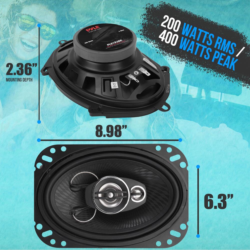 I have a pair of DS18 Pro-GM6B 6.5 MID-RANGE with a power output of 480 peak/140 RMS 8 ohm 94dB speakers in the rear doors and I've purchased a pair of Pyle PL6183BK 6 x 8 with the power output of 400 peak/200 RMS 4 ohm 91dB speakers for the front doors. I have three questions. First, is this a good match for quality sound? And, secondly, what would be a good head system to buy that would push these speakers to their RMS (or above) levels? Finally, what is a good placement for these speakers for the best sound?