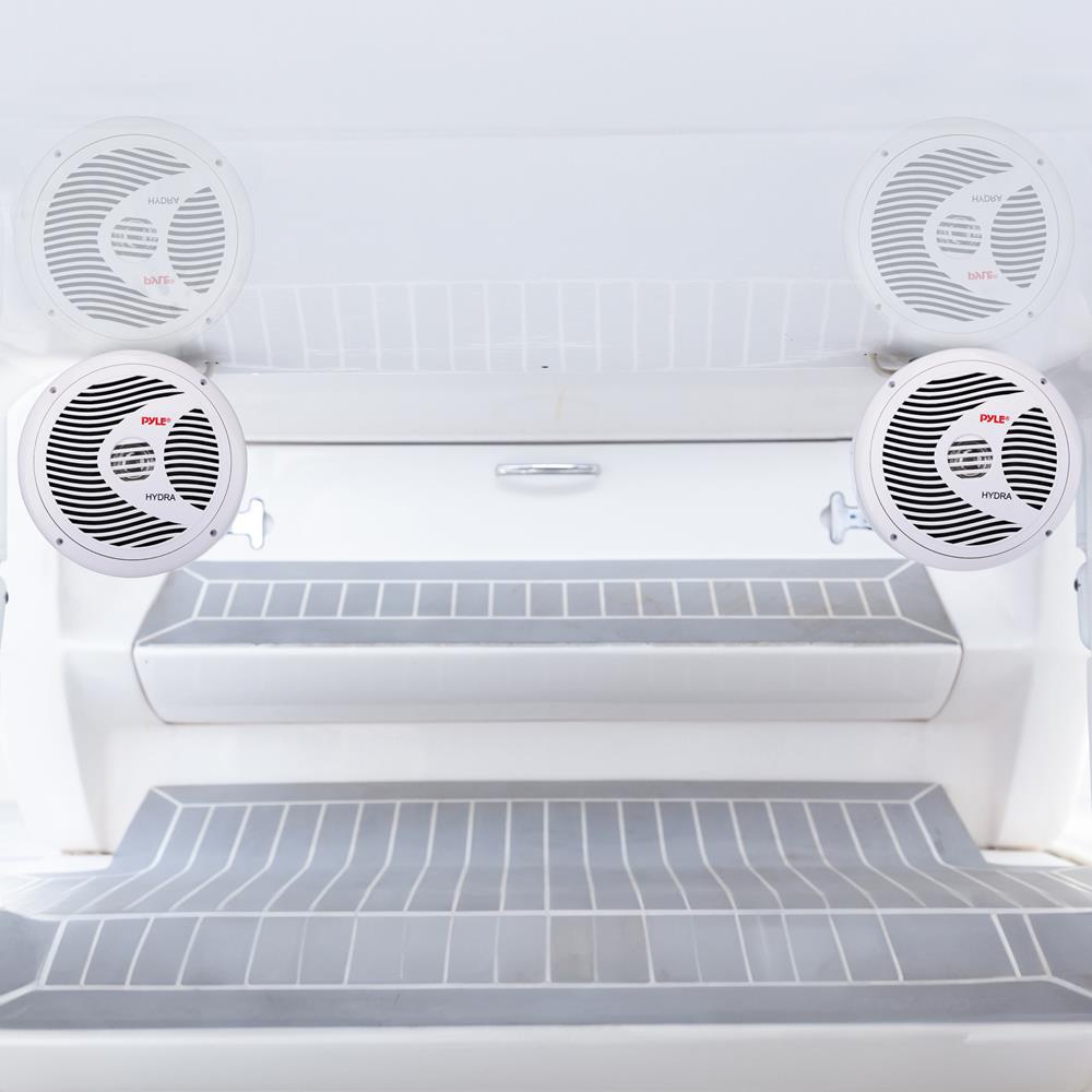 What plastic marine dry storage box or plastic Ammo box would this speaker 6.5 150w white marine speaker 7.4”x7.6”x7.1” fit on the front side by side on ?