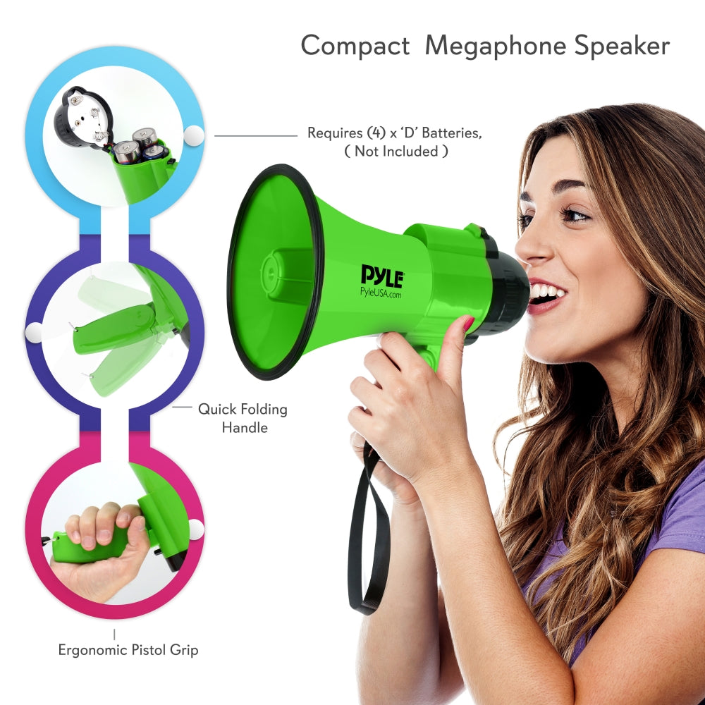 - Taille du mégaphone (diamètre x longueur) : 6,3’’ x 10,0’’ pouces