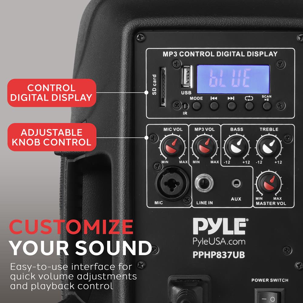 - (iPhone, Android, smartphone, iPad, tablette, PC, etc.) - Version Bluetooth : 2.1+EDR - Portée sans fil Bluetooth : plus de 30 mètres - Nom du réseau Bluetooth : 'Pyle Speaker' Subwoofer : - Taille : 8'' - Matériau : panier en acier embouti