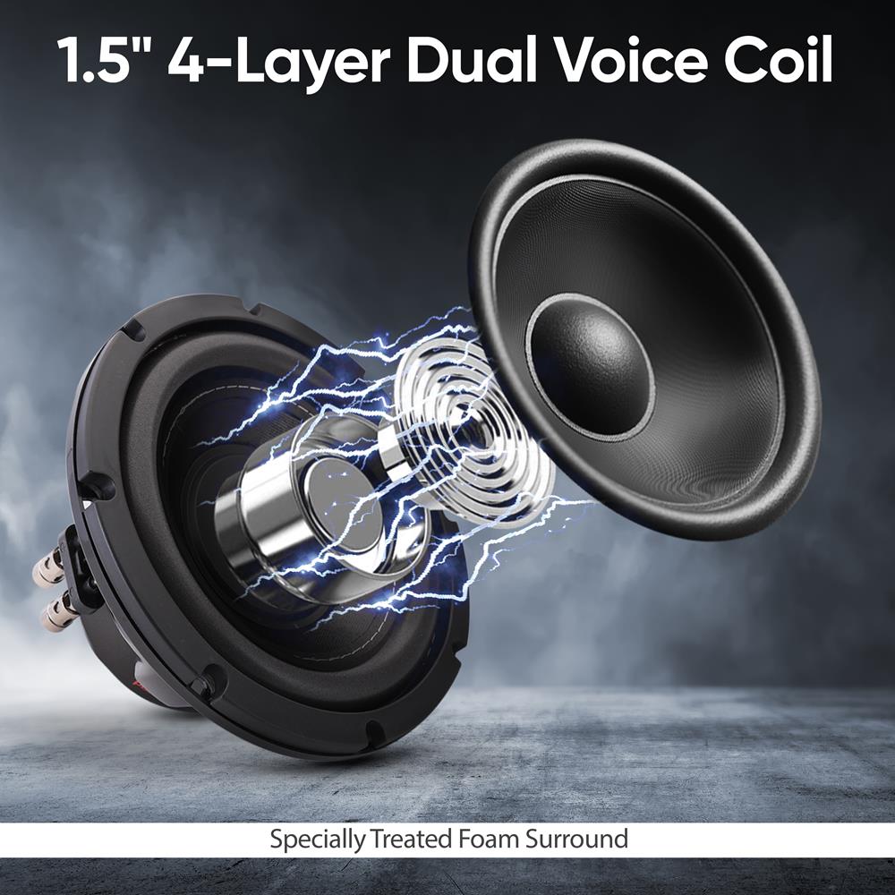 Le subwoofer Pyle 8 800 Watt à double bobine mobile 4 Ohm - SPL : 89dB - Aimant de 40 oz - Panier en plastique noir - Cône en papier non pressé - Impédance double 4 Ohm - Bobine mobile double de 1,5" à 4 couches - Suspension en mousse spécialement traitée - 400 Watt RMS / 800 Watt puissance maximale - Bornes de haut-parleur à ressort - Dimensions : 8,2" (diamètre) x 3,7" (profondeur).