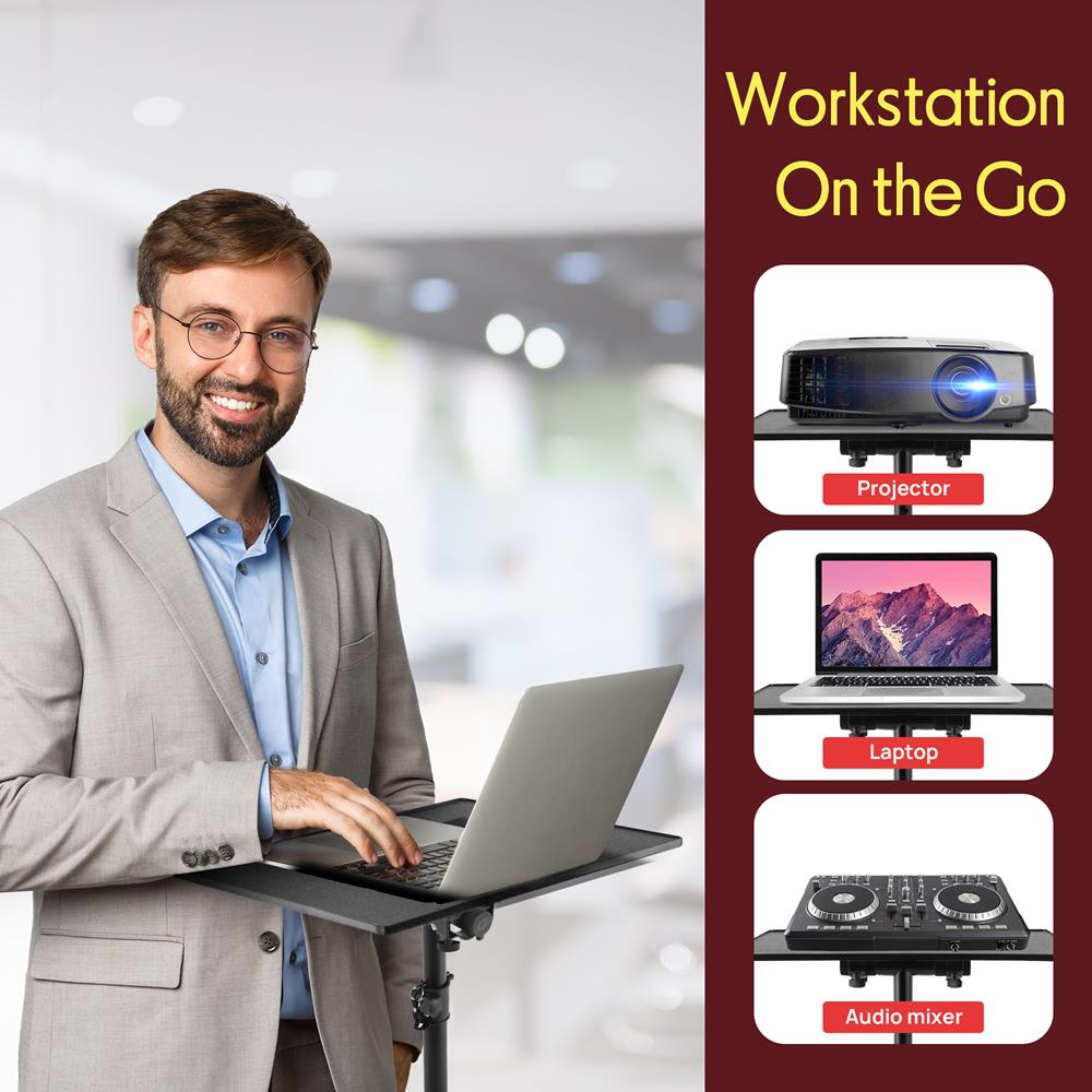 Le support universel pour appareils Pyle offre un emplacement pratique pour les équipements électroniques. Les boutons de serrage réglables en hauteur et le plateau réglable en angle se verrouillent en position pour des performances optimales de l'appareil. Le support compact, portable et pliable avec construction robuste permet une utilisation à la maison ou dans des applications professionnelles de scène et de studio. Utilisé pour ordinateurs portables, projecteurs, mixeurs, équipements DJ -- un certain assemblage est requis.