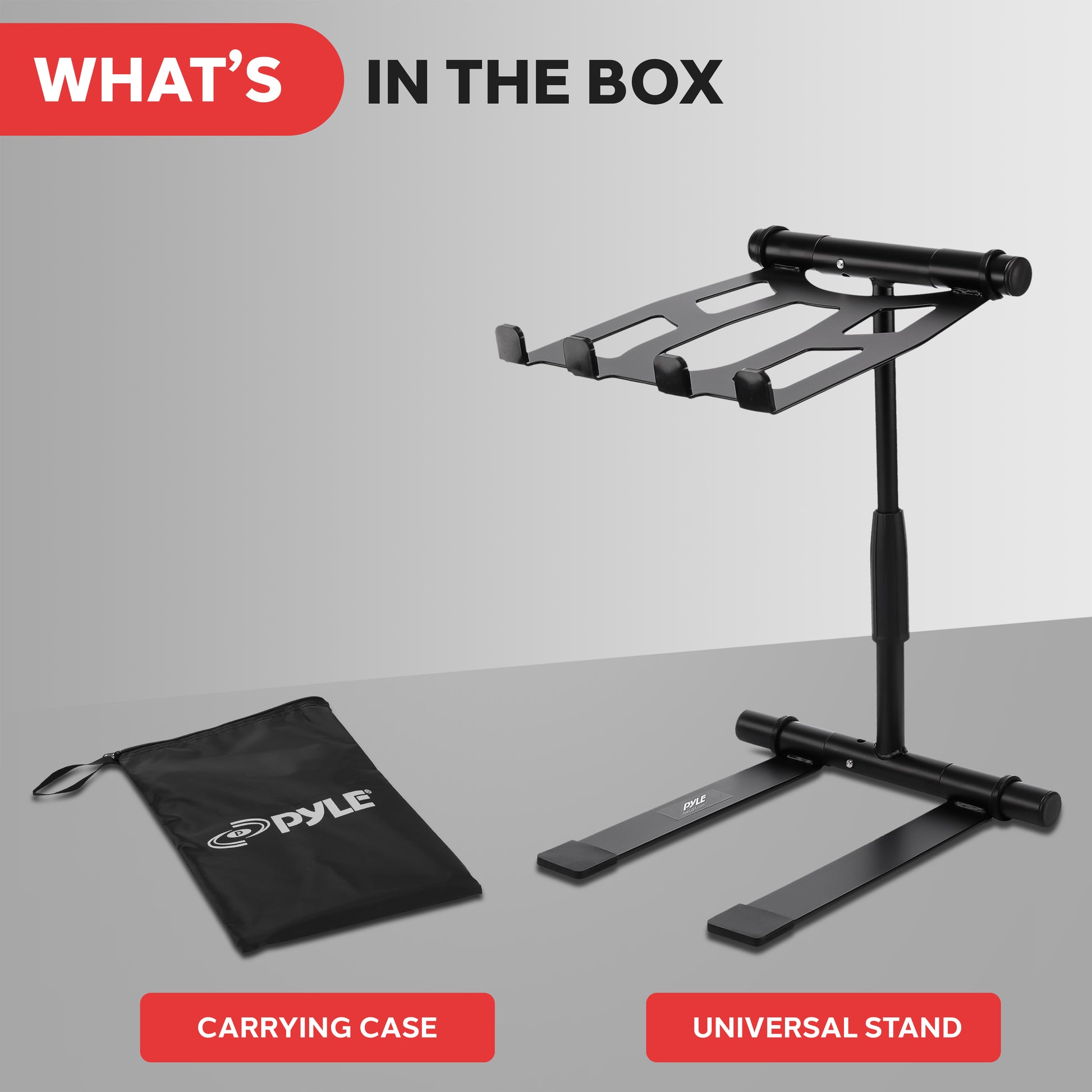 Pyle présente une nouvelle gamme de supports d'ordinateur portable portables et réglables. Ce support maintiendra de manière sûre et fiable tous les formats d’ordinateurs portables, iPad et tablettes. C’est une unité légère et robuste qui se plie à plat pour plus de commodité et de portabilité. Il n’y a aucune pièce détachée et tous les matériaux utilisés sont très résistants pour une fiabilité et une qualité inégalées.