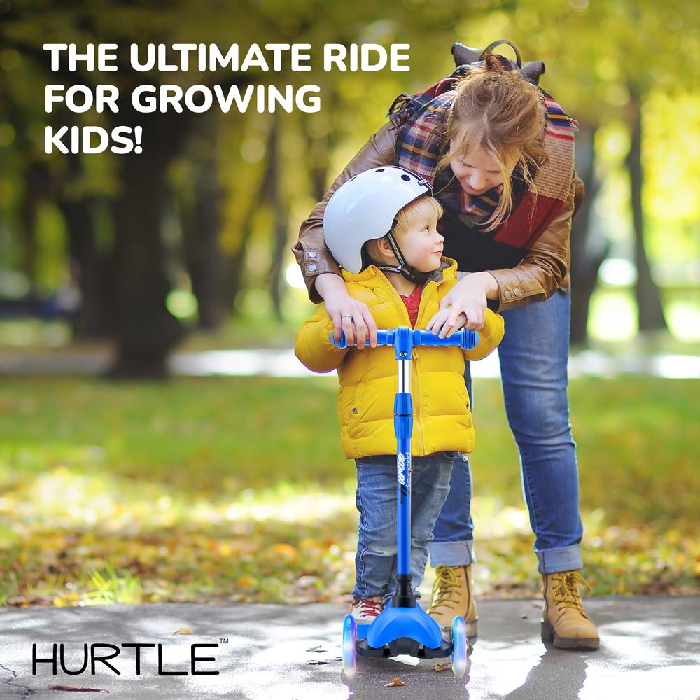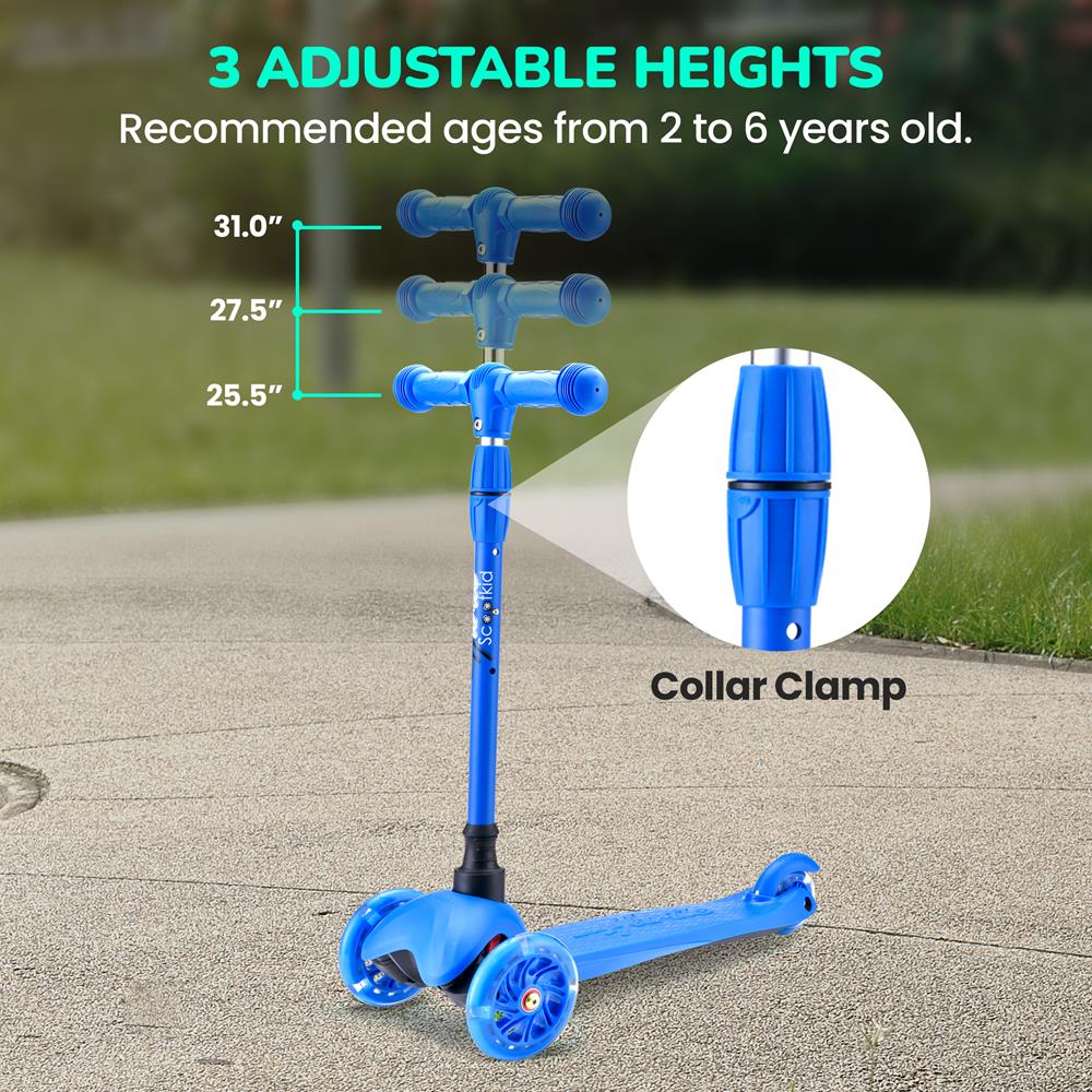 Kids Mini Kickboard Scooter, Adjustable, LED Wheels, Ages 2-5, Blue
