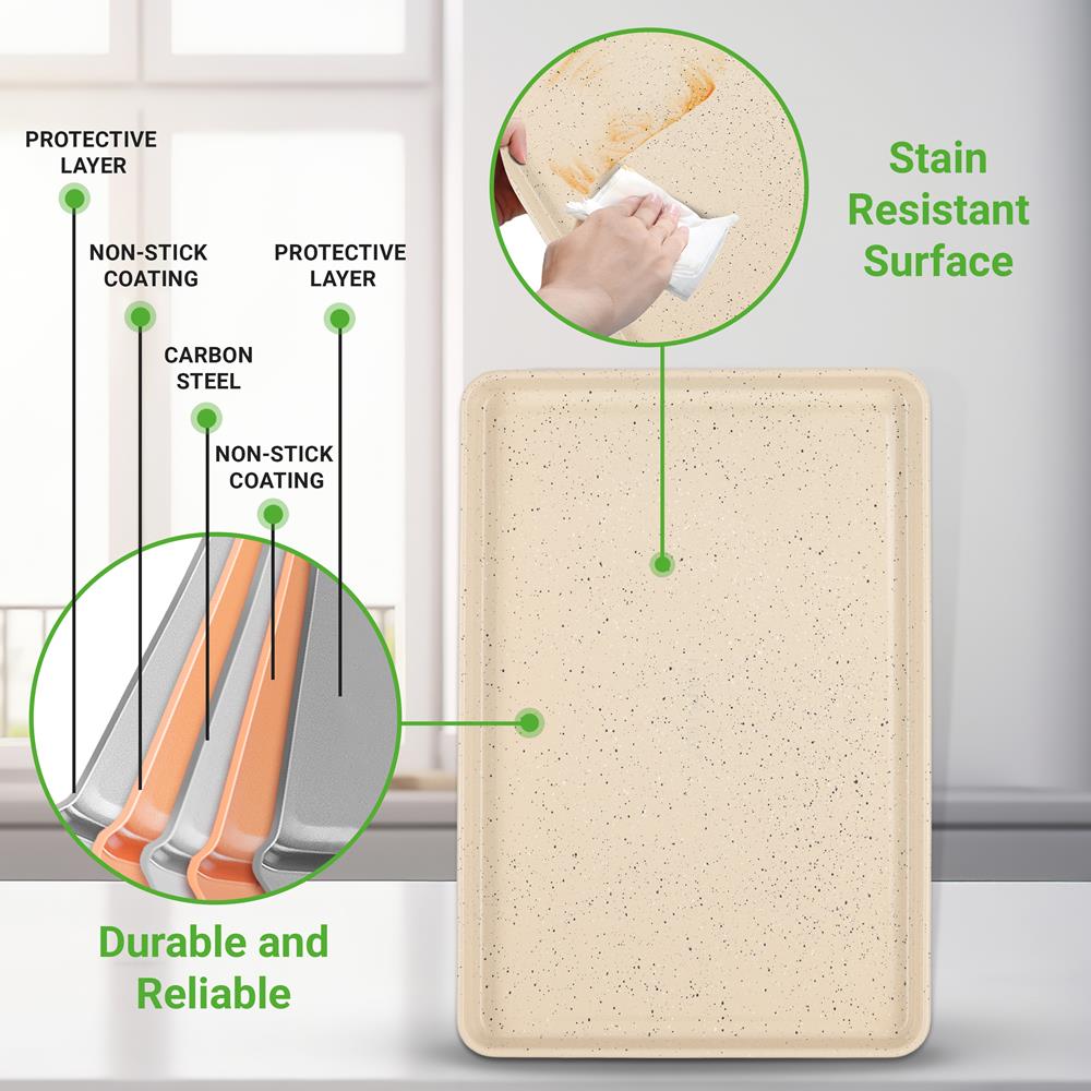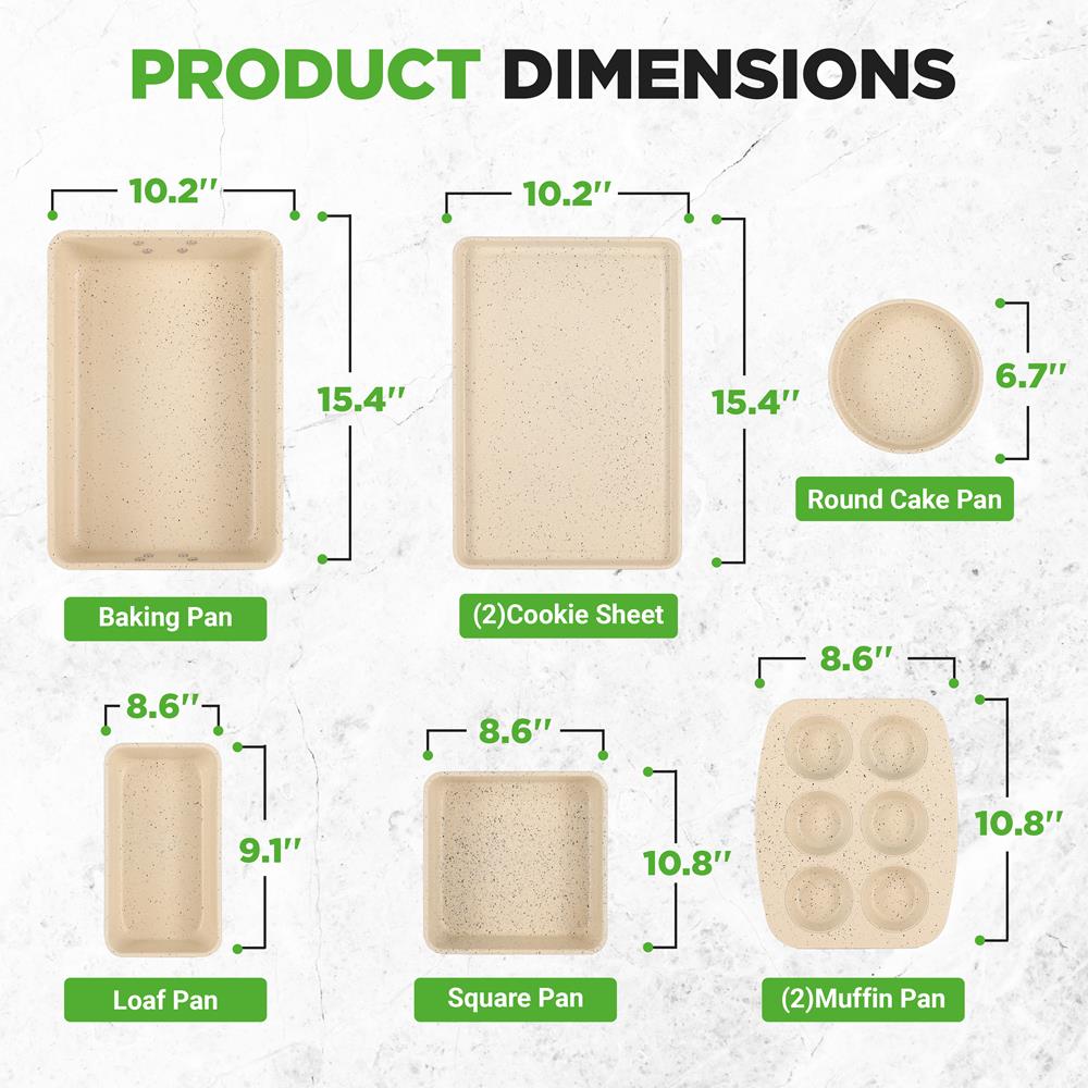8-Piece Non-Stick Bakeware Set, Stackable Carbon Steel, Marble Cream