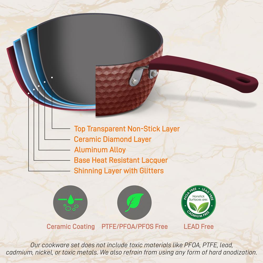 - Coating: Excilon Wine Red Diamond Ceramic Coating Inside, and Heat Resistant Lacquer Outside