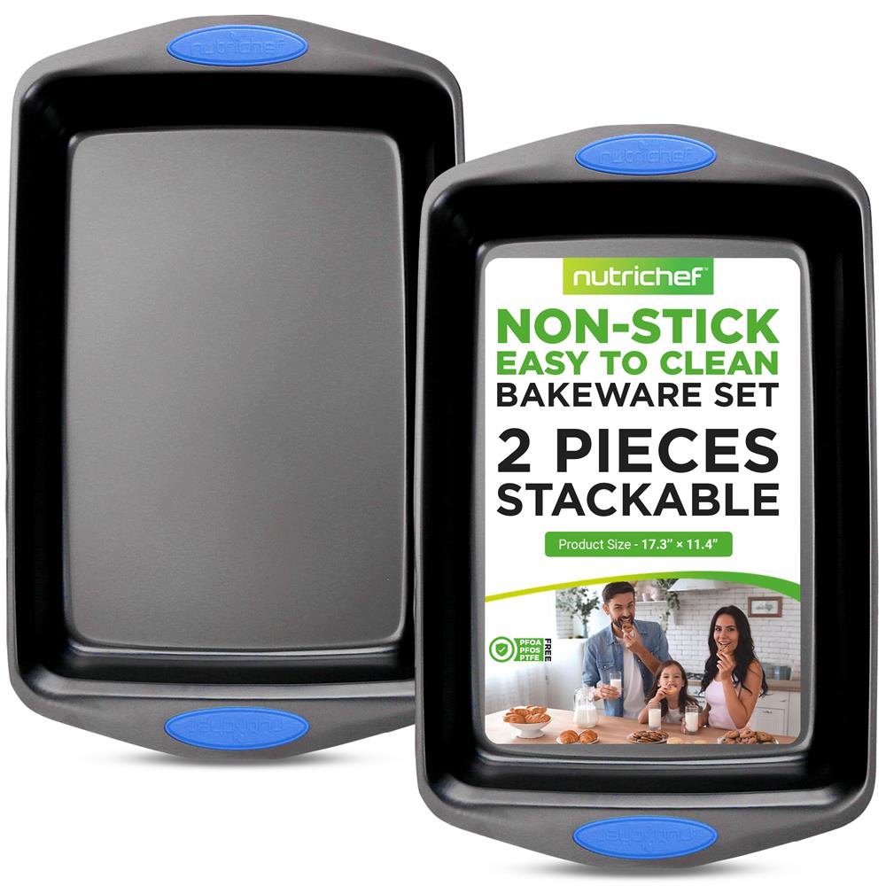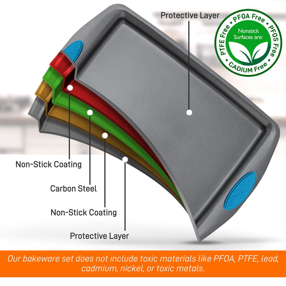- Flexible & Nonstick Carbon Steel Bakeware Set With Blue Silicone Handles