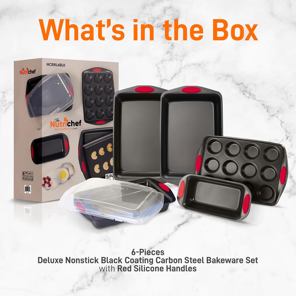 - Flexible & Nonstick Carbon Steel Bakeware Set With Red Silicone Handles