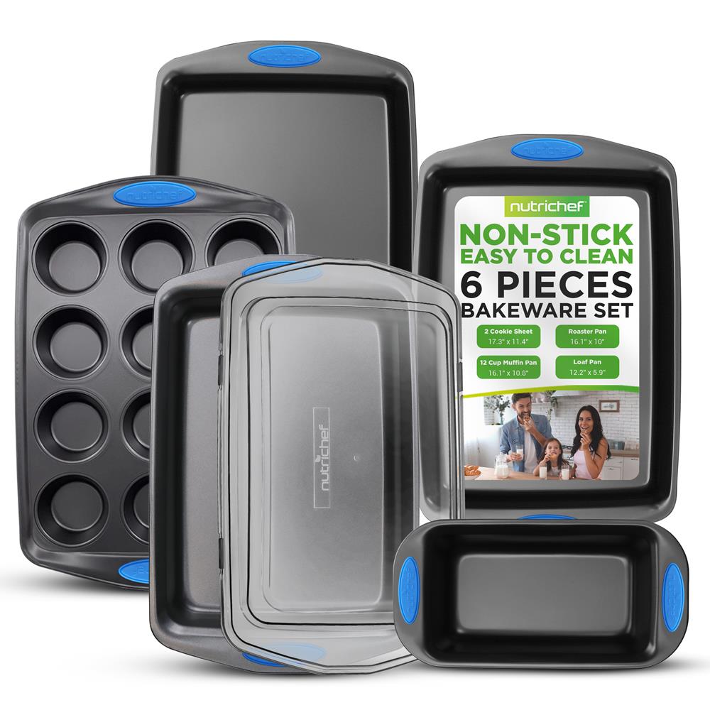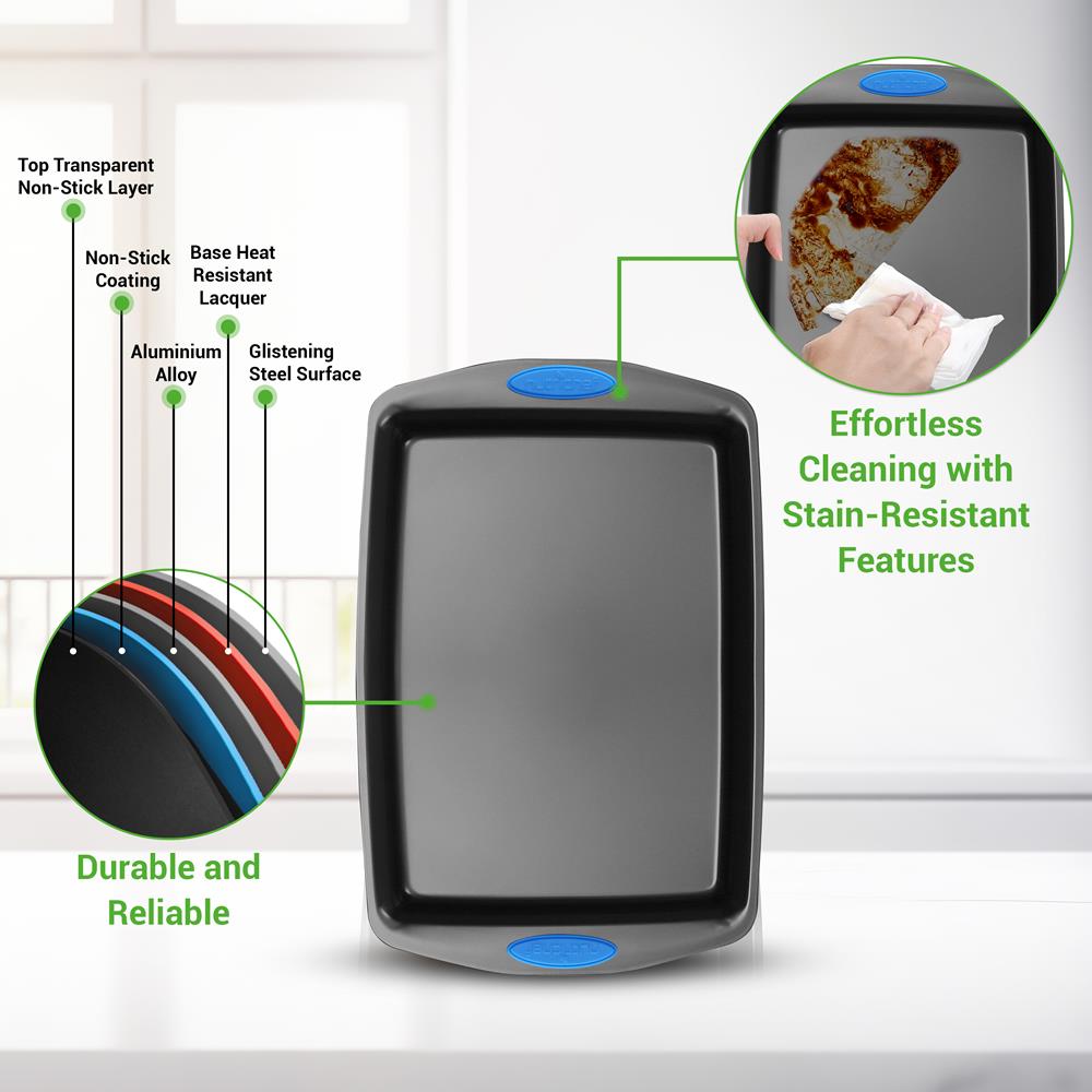 - Flexible & Nonstick Carbon Steel Bakeware Set With Blue Silicone Handles