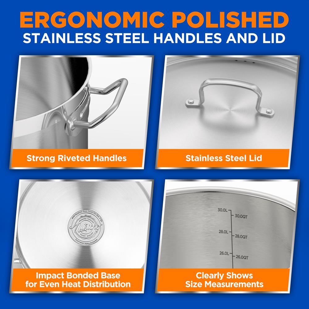 30 QT, Stainless Steel Stockpot