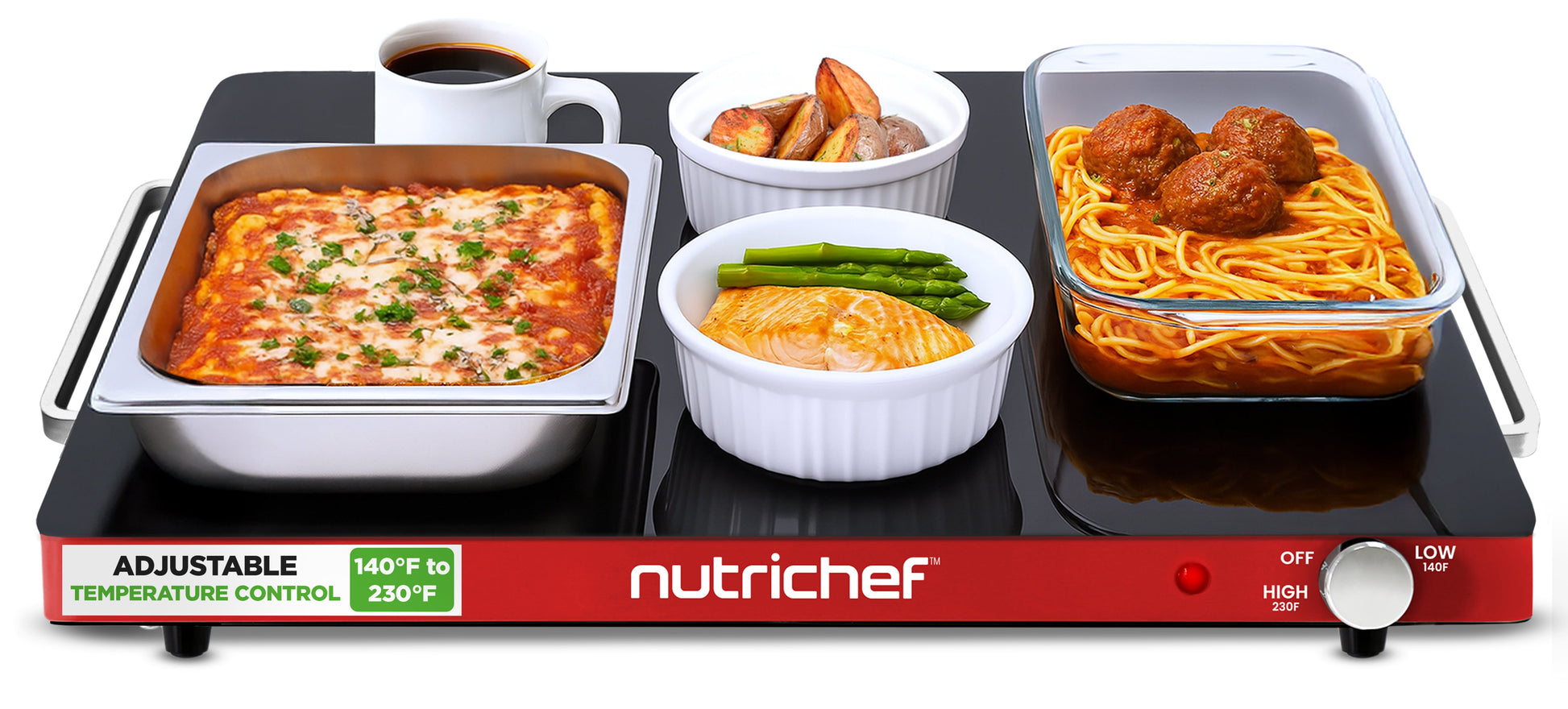 Electric Warming Tray Keeps Food Warm Glass Surface Adjustable Temp Red