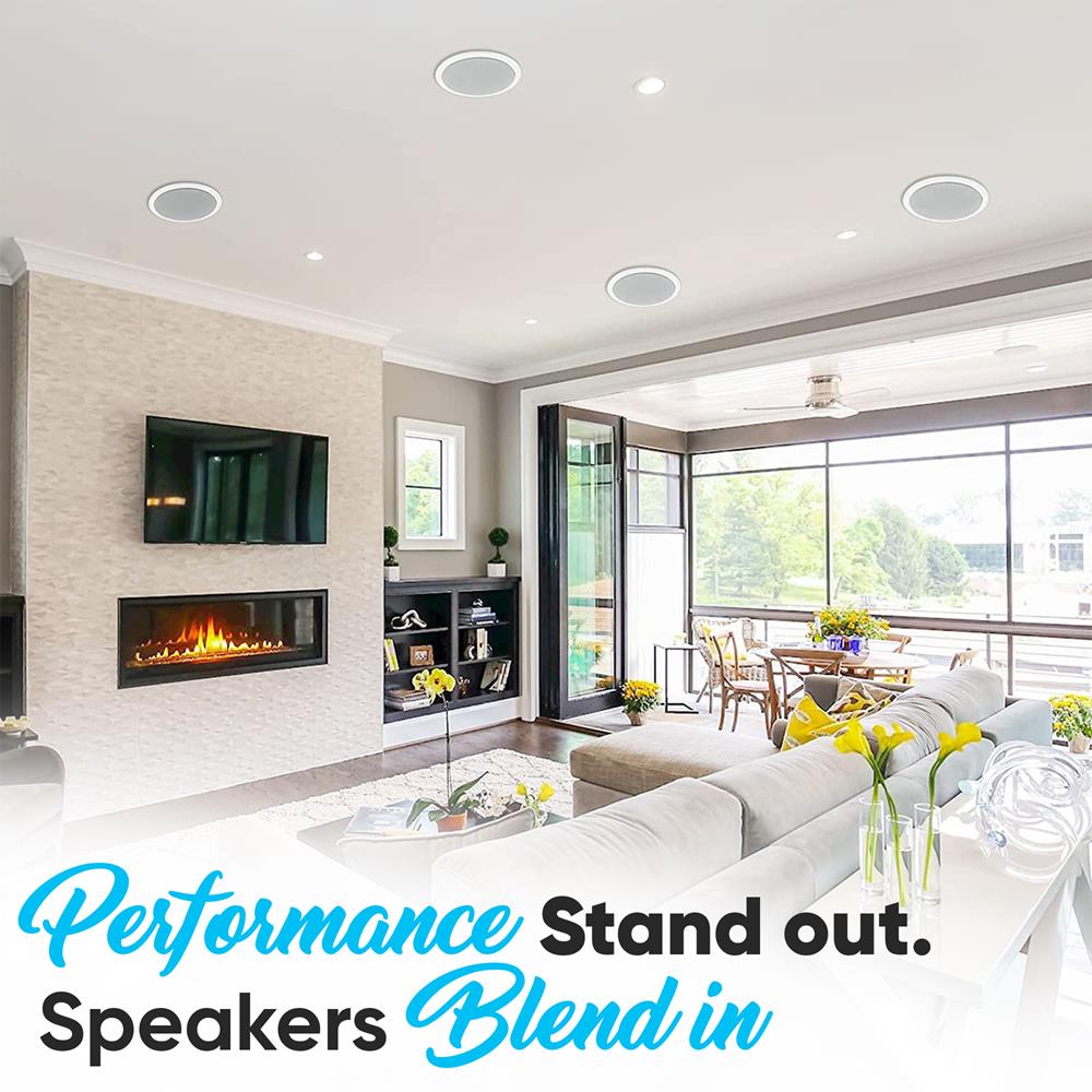 The Pyle In-Wall/Ceiling Speakers deliver stereo sound to any room in your home or office. Each speaker comes equipped with a high compliance polymer tweeter delivering a full, rich sound without cluttering floor space. The round style speakers are perfect for any custom audio application thanks to the stain-resistant grills and environmentally friendly ABS construction. The system features spring-loaded speaker terminals for quick connection and comes with a cut-out template for easy installation. Mount them in a convenient location on the wall or ceiling for a flush, clean look. Achieve wide-range sound performance and add audio to any room with the Pyle In-Wall/Ceiling Speakers.