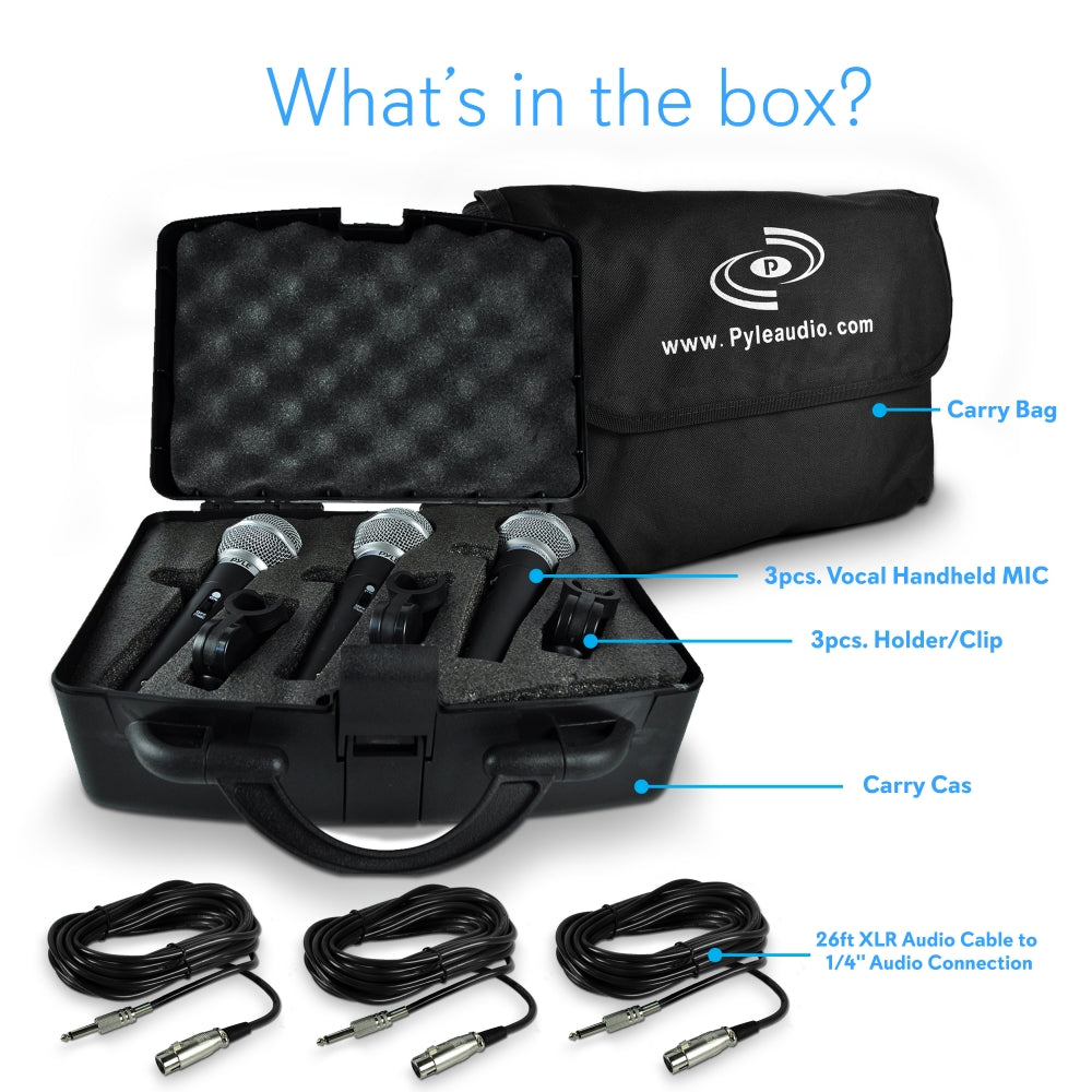 - Includes (3) Handheld Microphones & (3) XLR Audio Cables