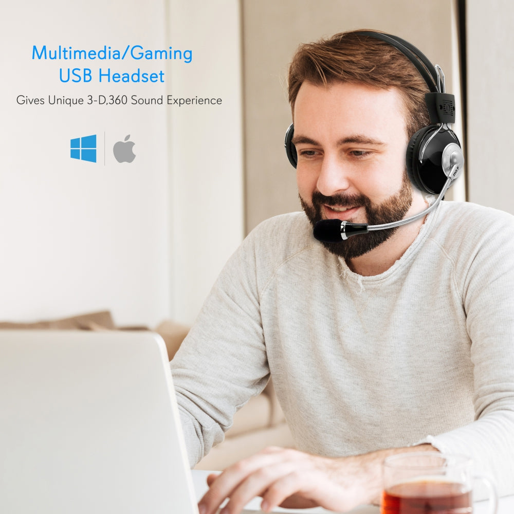 Check out this multimedia/gaming USB headset with noise-canceling microphone from Pyle. Use it to easily video/audio chat, communicate with friends during games, write using speech recognition software, and record podcasts. Plus, it uses a USB connection, so you can bypass your PC or Mac sound card for a direct, high quality connection. This headset uses noise canceling microphone technology to ensure a high-quality, crystal-clear sound at all times. You can quickly adjust the headband and boom arm. The convenient in-line volume control allows you to adjust the volume to your exact specification. Connects via a 6 ft. USB cable.