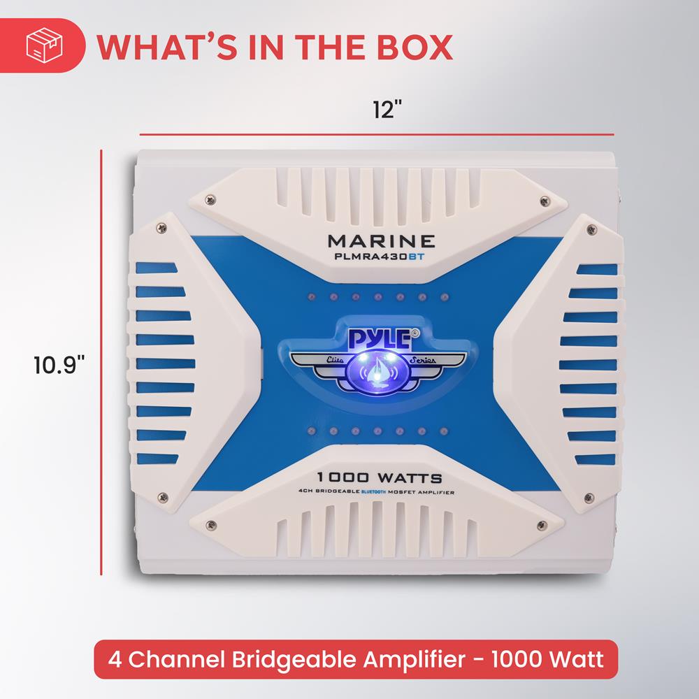The RMS per channel on the PLMRA430BT is 250 Watt x 4 Power Output