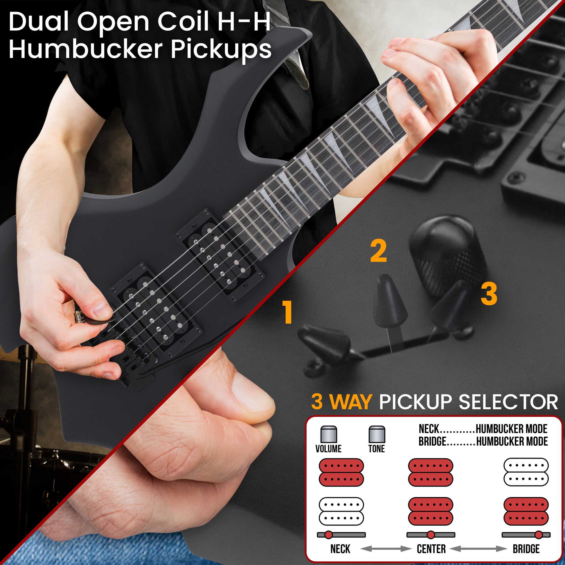 Whats in the Box: 6-String Electric Guitar 10w Amplifier 98.4’’ -inches Guitar Cable Allan Key and Tremolos Rod Gig Bag (6) Spare Electric Guitar Strings + Extra 1st String Detachable Shoulder Strap Digital Tuner (3) Celluloid Picks