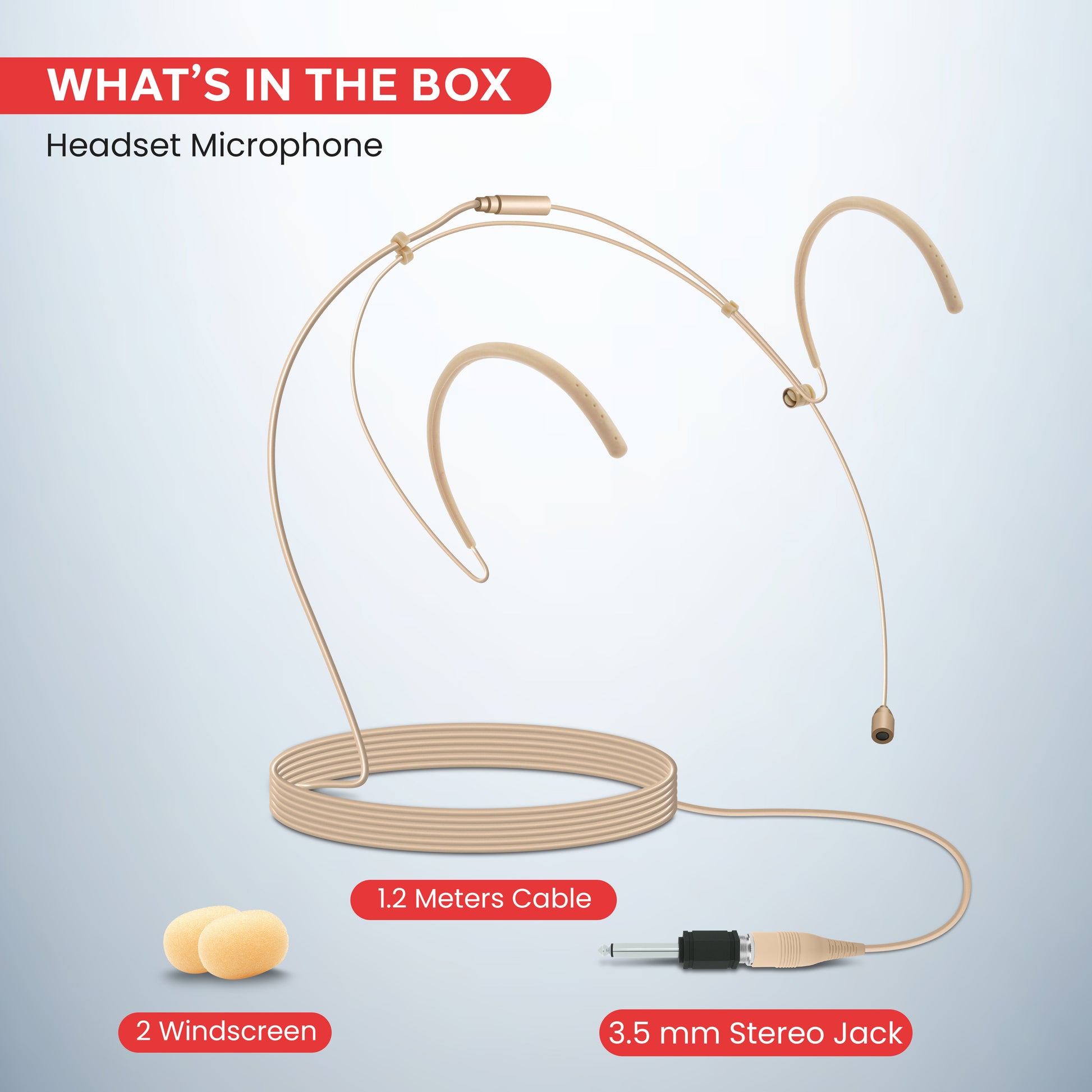 This headworn omni-directional mic has a back electret condenser for crystal-clear recording of your voice. Includes a ¼ adaptor 1.2 meter cable and windscreen.