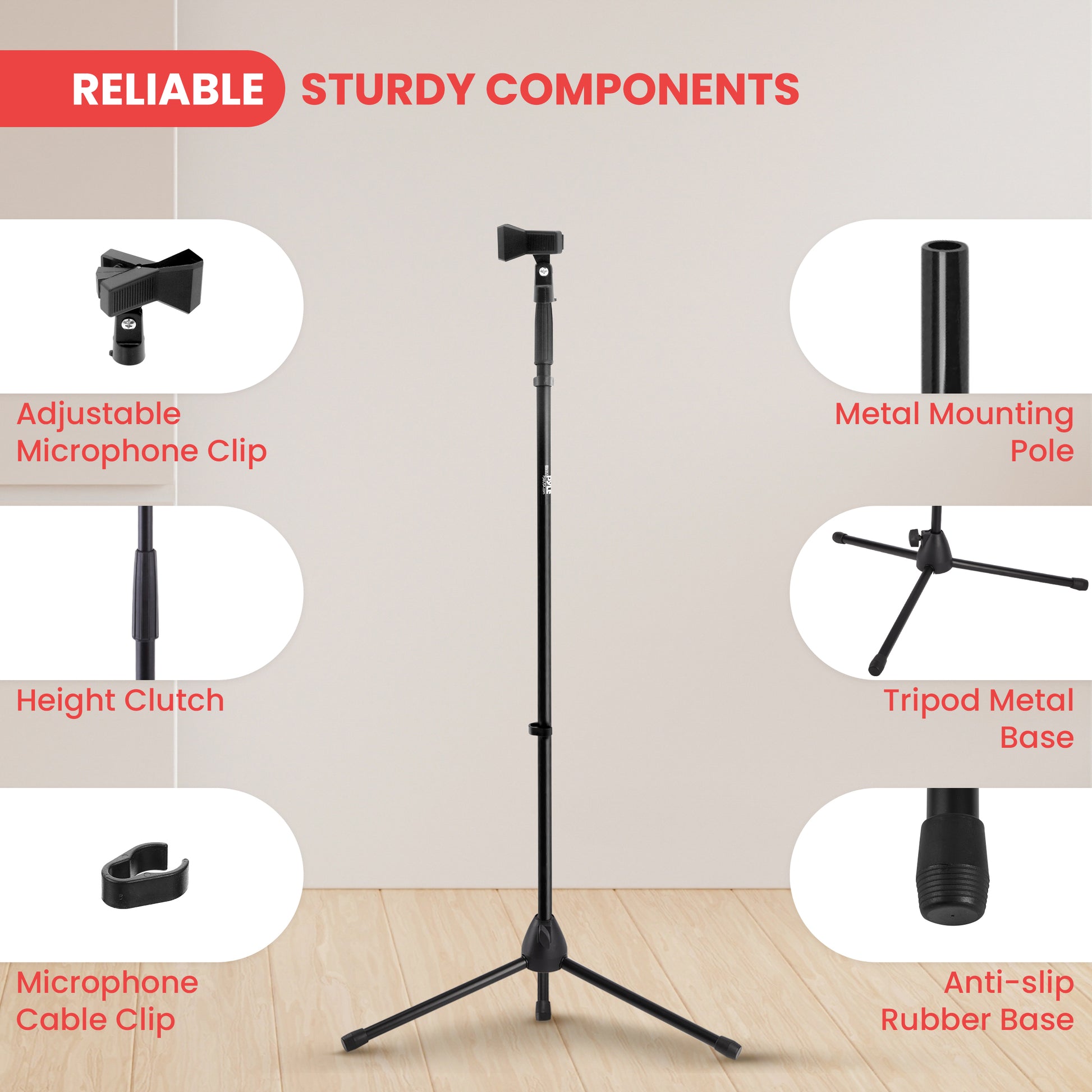 Whats in the Box: Tripod Microphone Stand Microphone Clip Cable Clip 5/8 Screw Adapter"