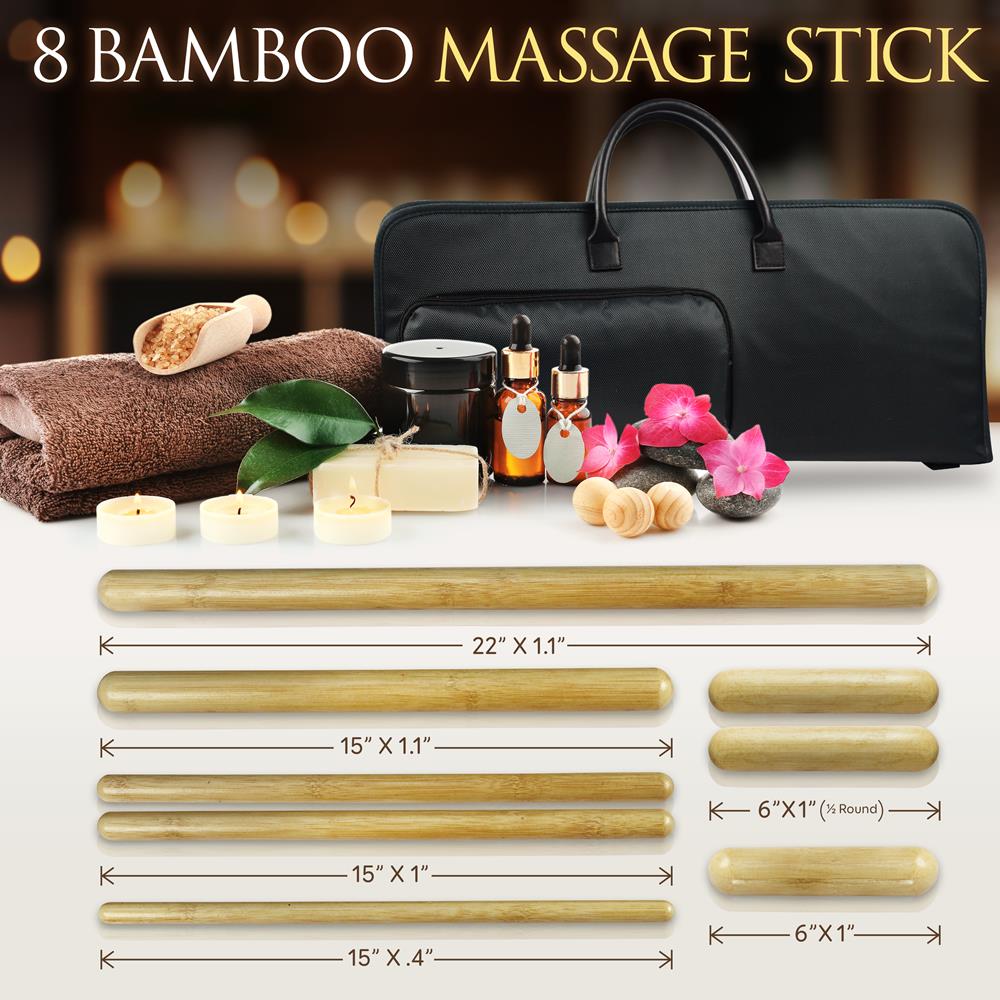- Bamboo Massage Sticks Dimensions: (1) 22.05’’ x 1.19’’ –inches,