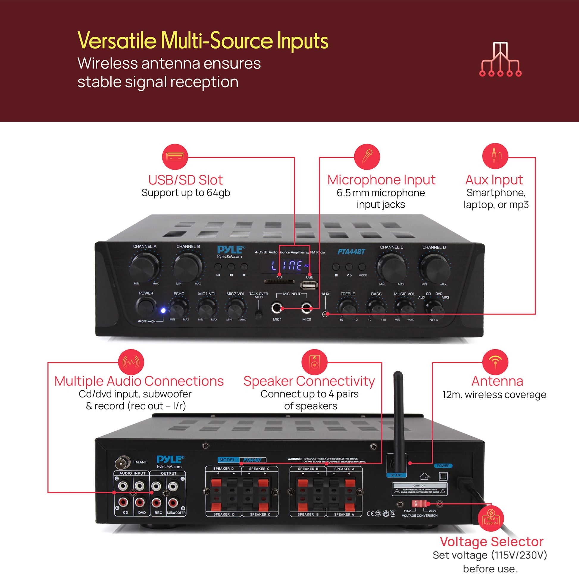 - Built-in Microphone Talk-Over Function (MIC1 Only)