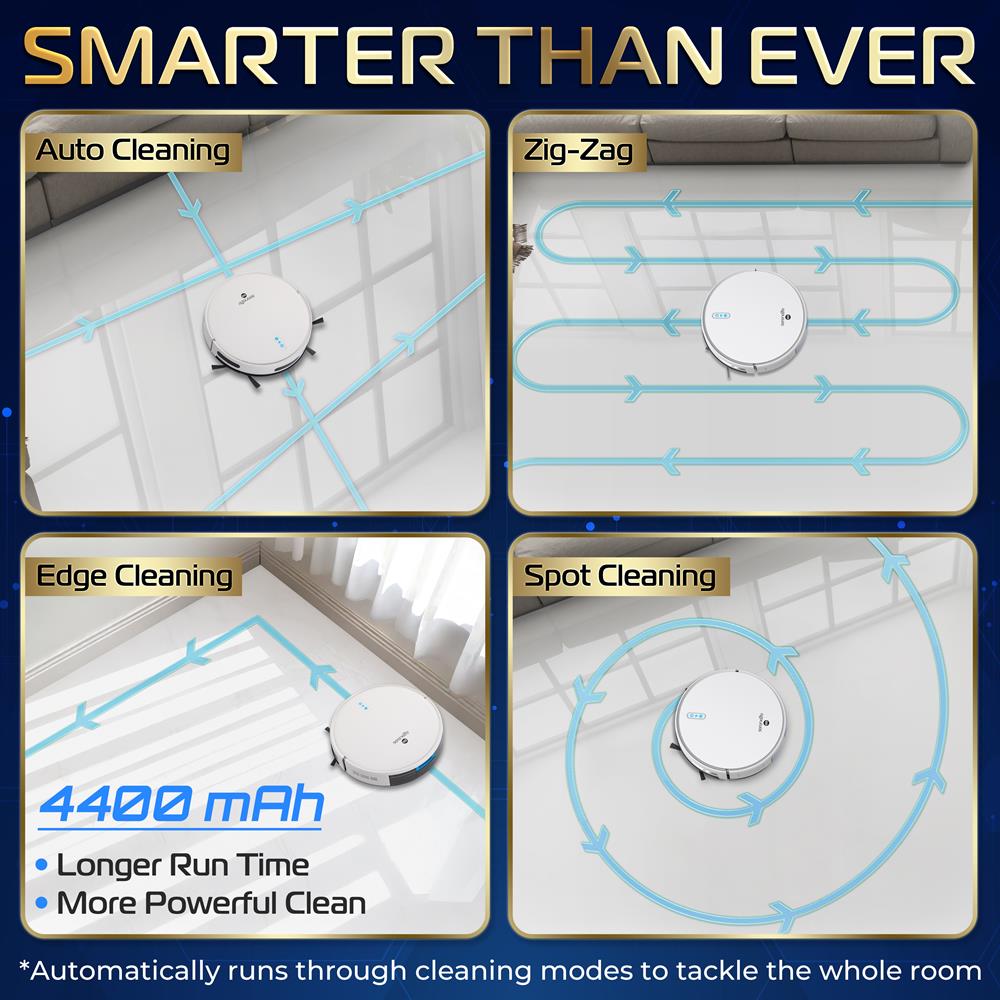 - 4 Cleaning Modes: Auto, Zig-zag, Spot, Edge