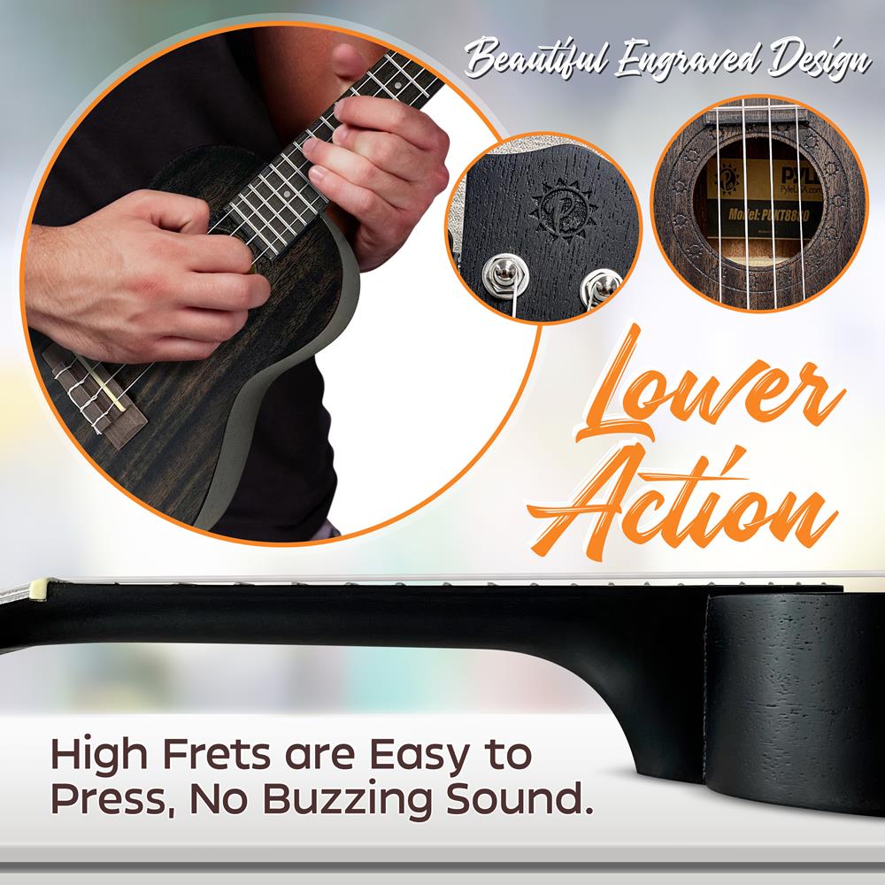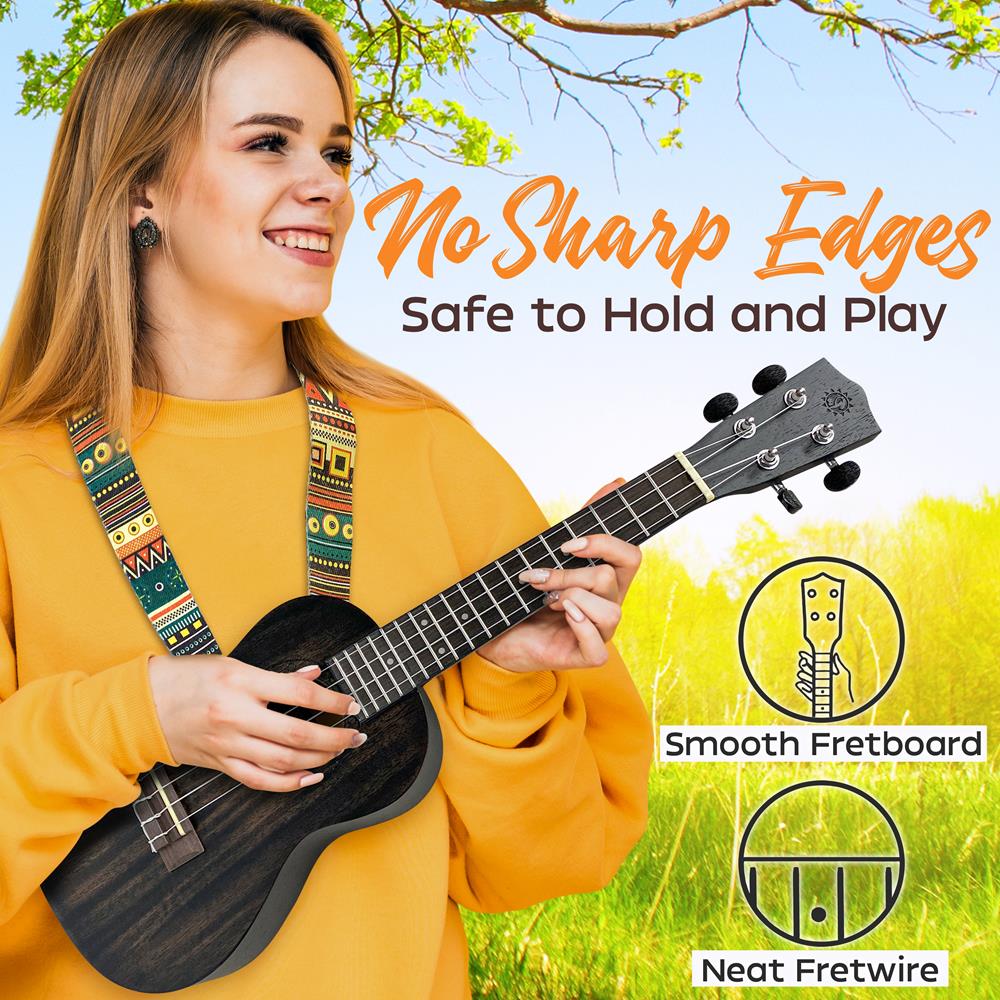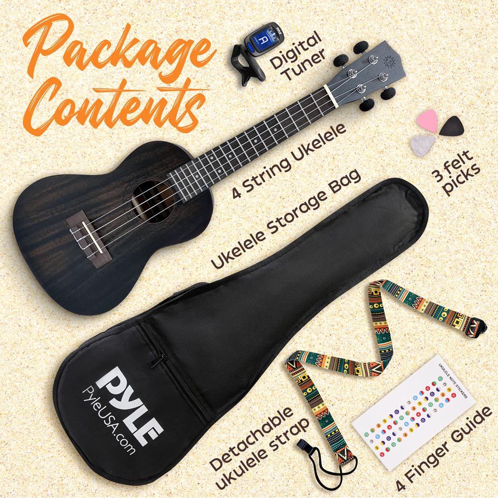 - Durable Strap Suits for Ukulele without Pin - Finger Guide Sticker for New Beginners and Ukulele Lovers What's in the Box: - 23'' Inch Concert Ukulele - Digital Tuner - Detachable Ukulele Strap - (3) Felt Picks