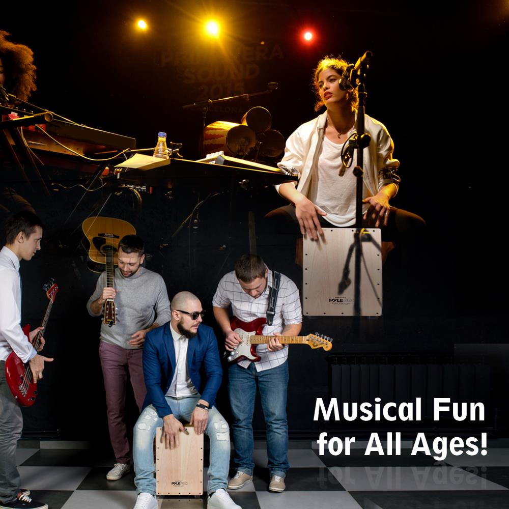 The Pyle Stringed Jam Cajon features classic and traditional instrument style. Hand-crafted wooden panel box frame ensures efficient acoustical percussion sounds, and style. Integrated guitar strings allow for rhythmic production while the rubber-capped feet at the base provide anti-vibration interference. Lightweight and compact design makes it perfect for beginners and professionals -- of all ages! Get an introduction, to musical percussion, with the Pyle Stringed Jam Cajon.