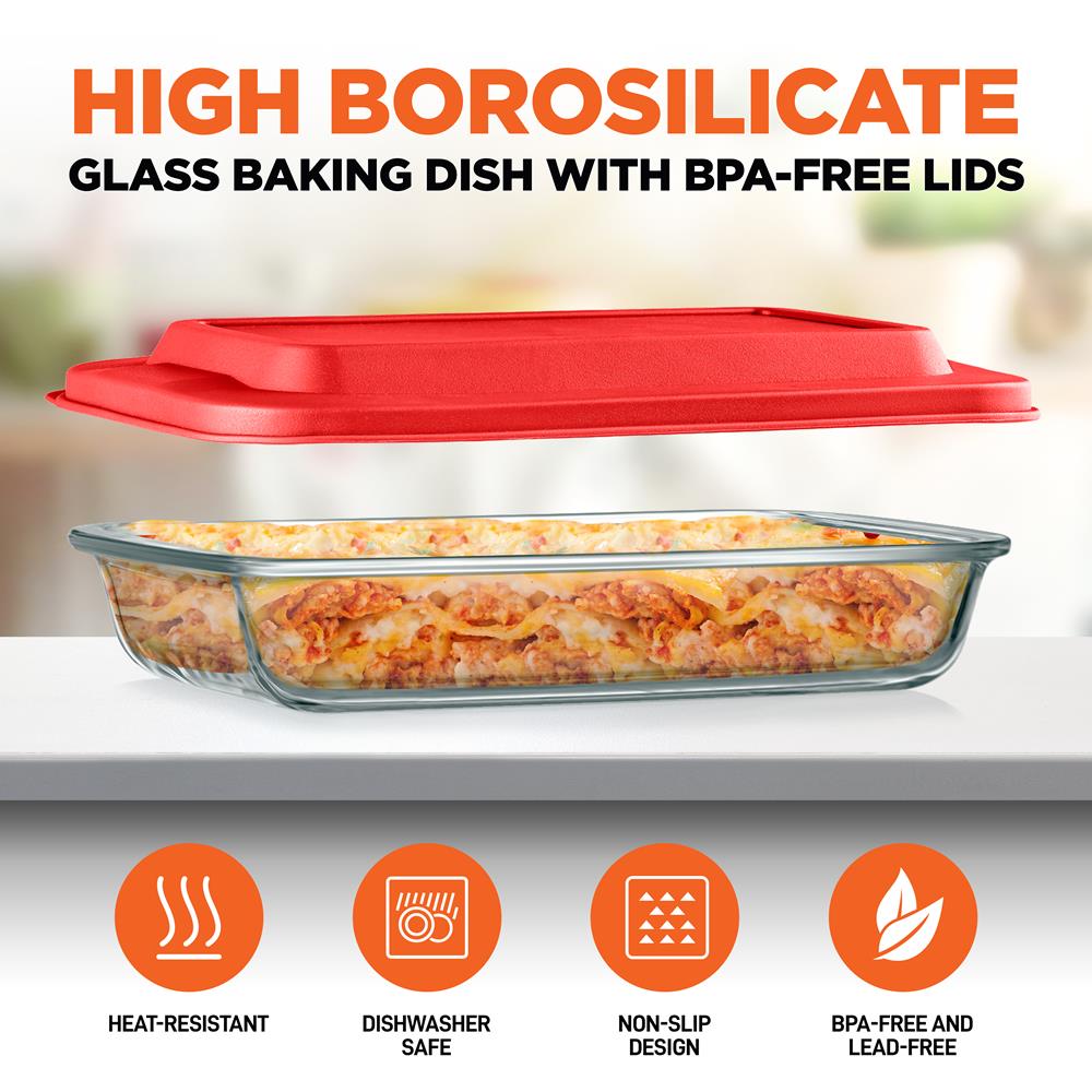 - High Borosilicate Glass Baking Dish with BPA-Free Lids
