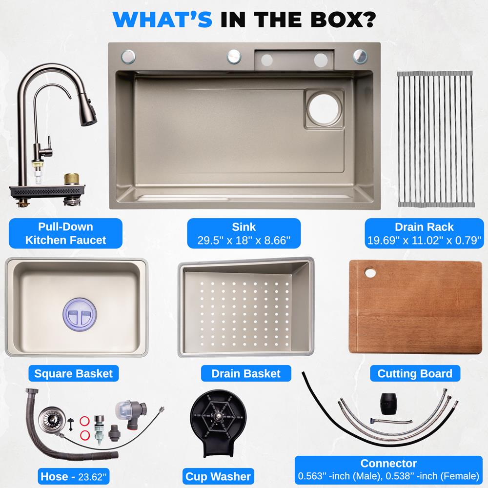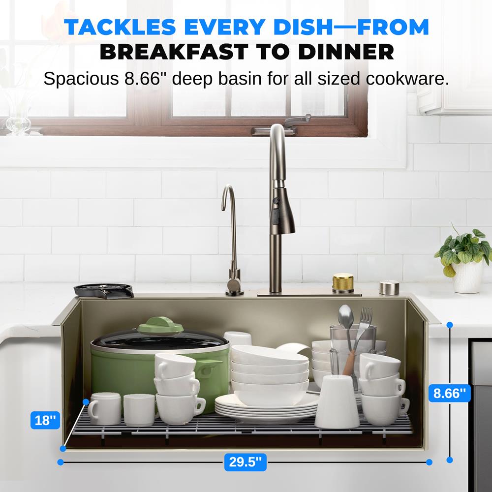 - Sink Dimensions (L x W x H): 29.5'' x 18'' x 8.66'' -inches