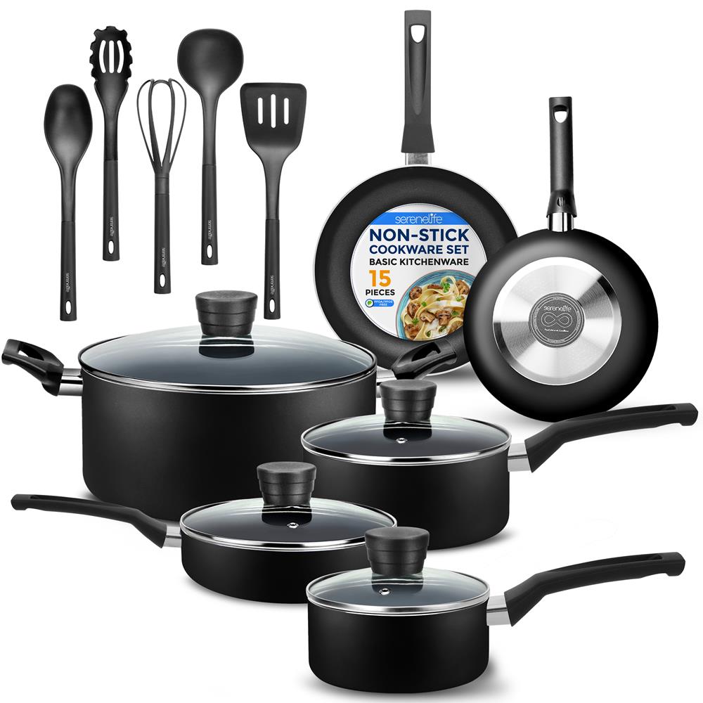 15-Piece Non-Stick Cookware Set, Even Heat, Black Coating