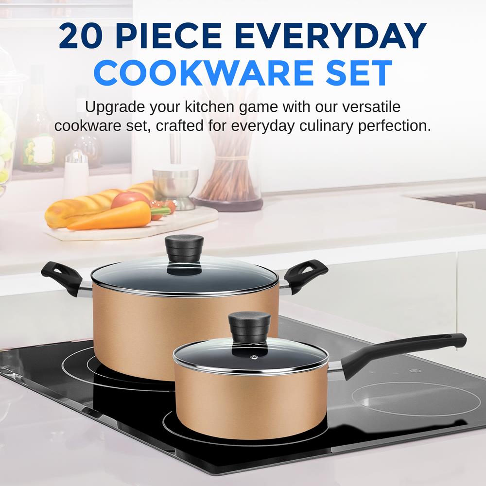 20-Piece Kitchenware Set, Even Heat, Non-Stick Coating, Gold