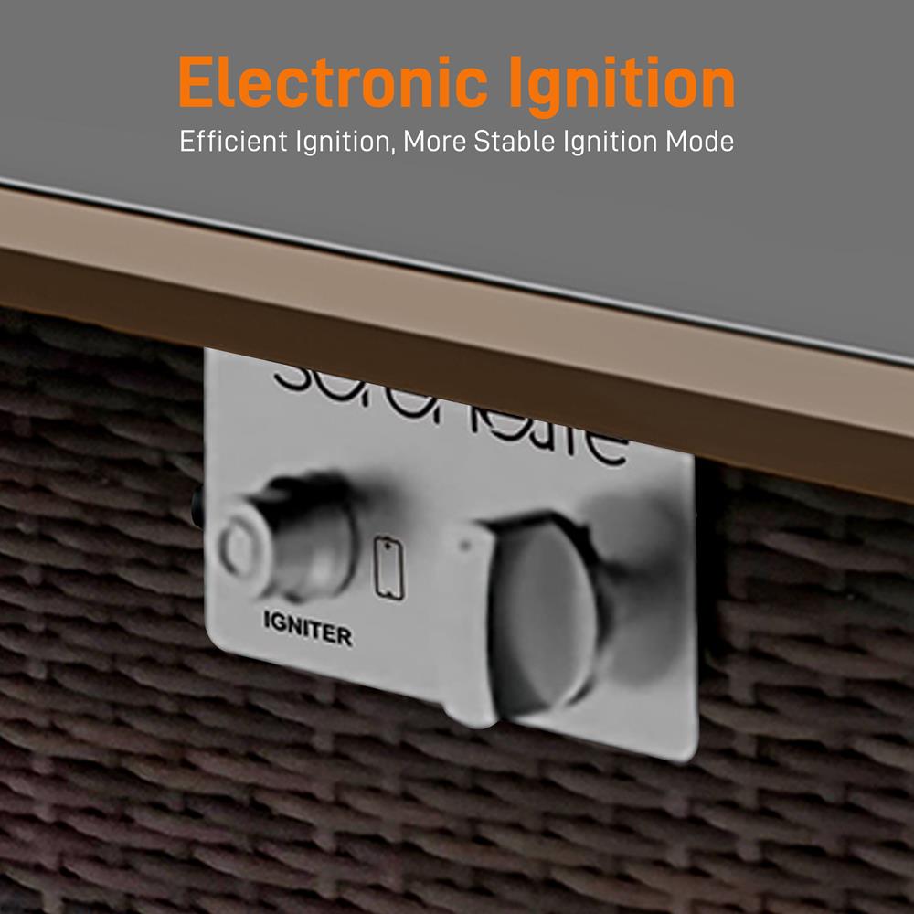 Outdoor Propane Fire Pit Table 50,000 BTU Auto-Ignition Glass Wind Guard, Rattan Brown
