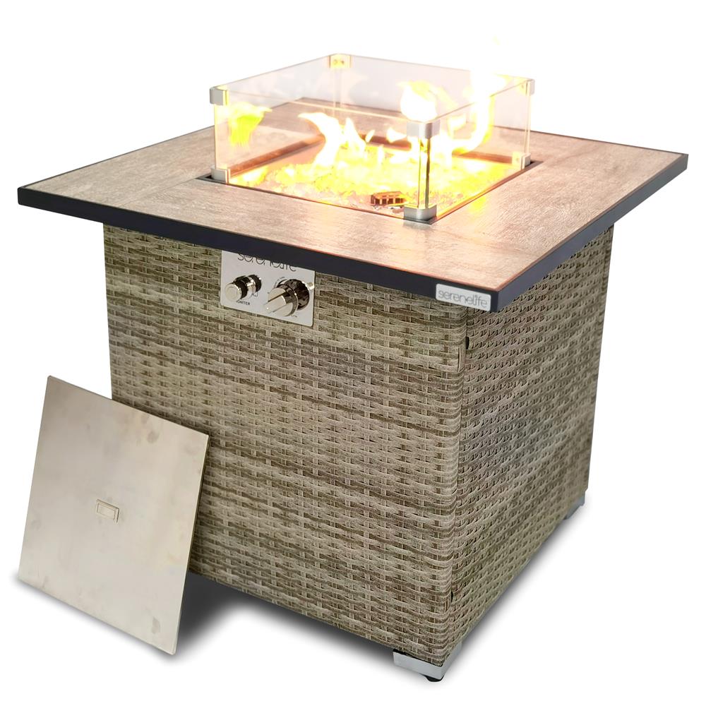 - Sturdy Wicker base with tile tabletop Gas Fire Pit Table