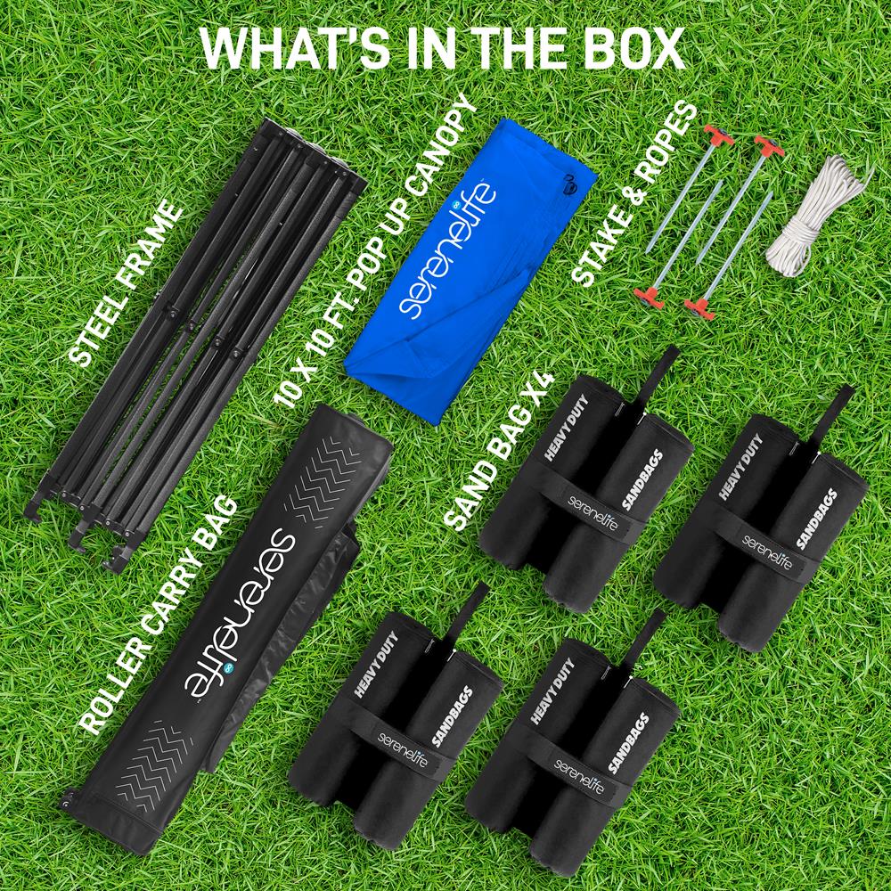 - Heavy-Duty Fabric; Covers 4 Tables, 3 Beach Chairs and 10 People at the Same Time